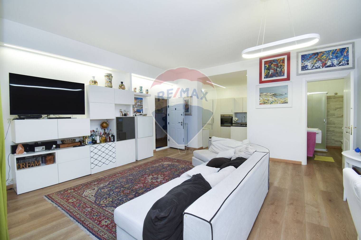 L’accesso avviene tramite un elegante ingresso che conduce ad un ampio salone, ideale per momenti di relax e convivialità.