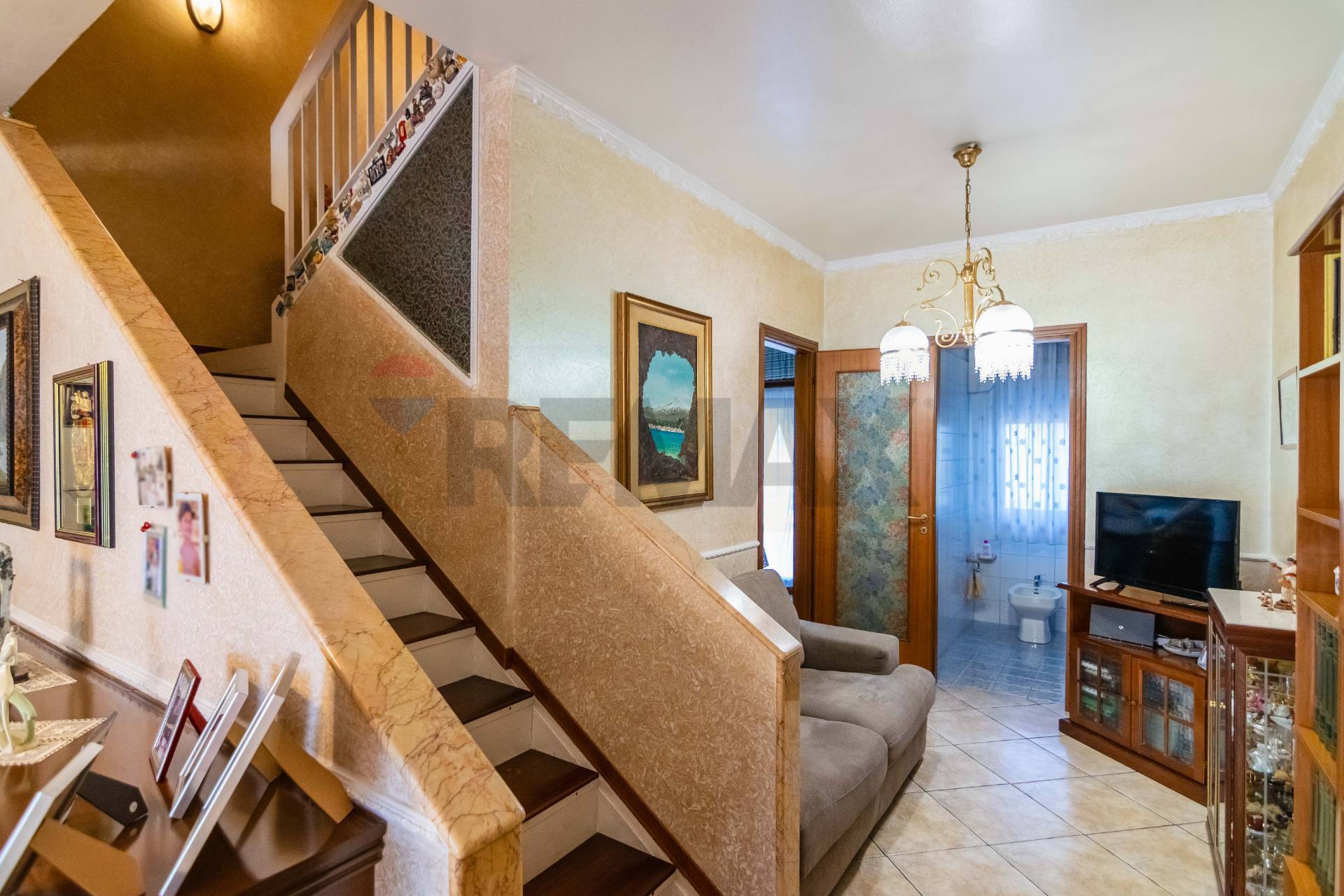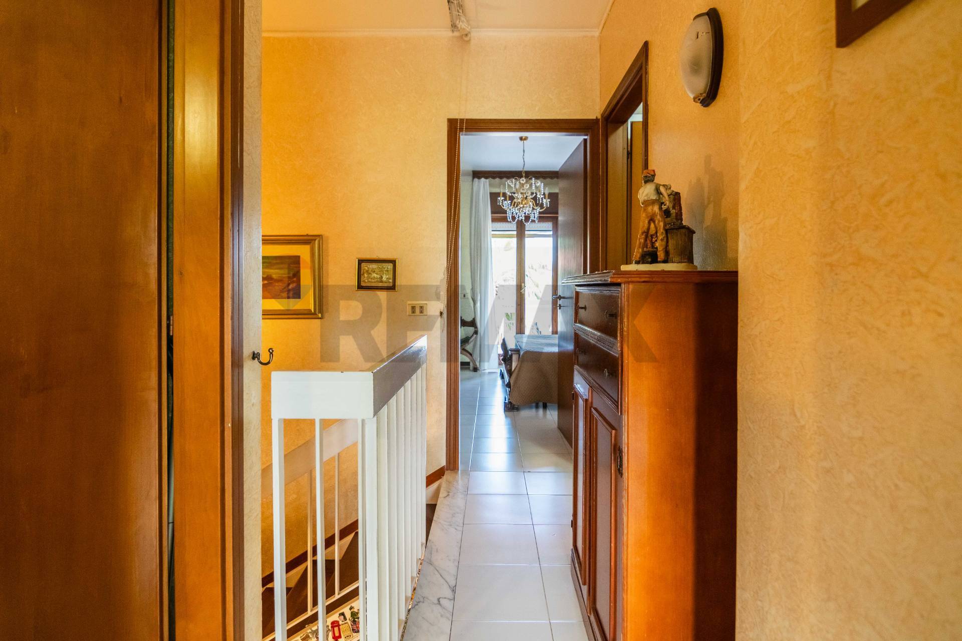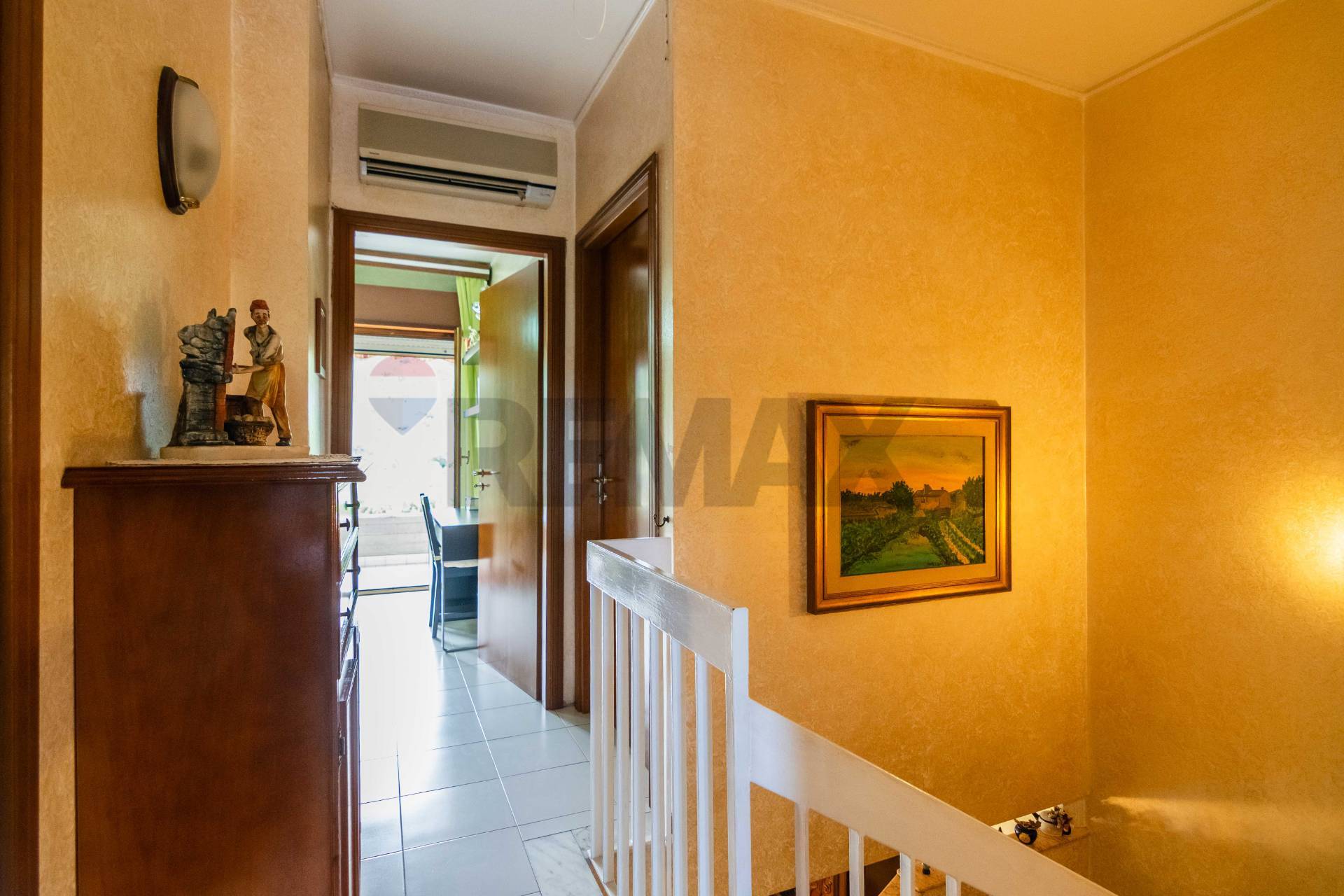 Accediamo all’immobile tramite una scala che ci porta al 1° Piano ed accediamo direttamente in un ampio soggiorno che collegato da un disimpegno accediamo al bagno e alla cucina con affaccio su un ampio balcone, tramite una scala nel soggiorno accediamo al secondo piano dove troviamo una camera da letto matrimoniale con un ampio balcone e altre due camerette anch’esse balconate e infine un bagno.