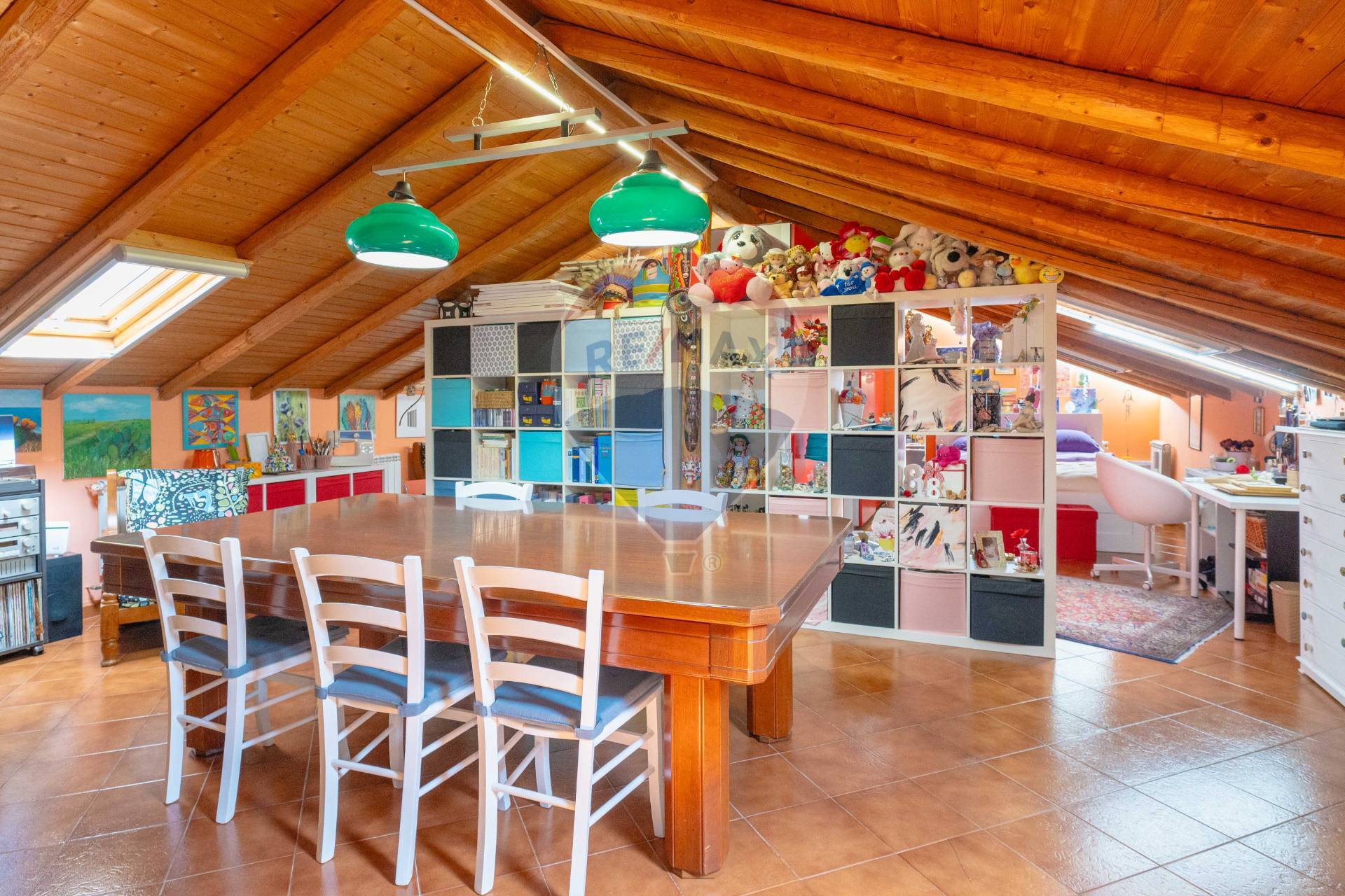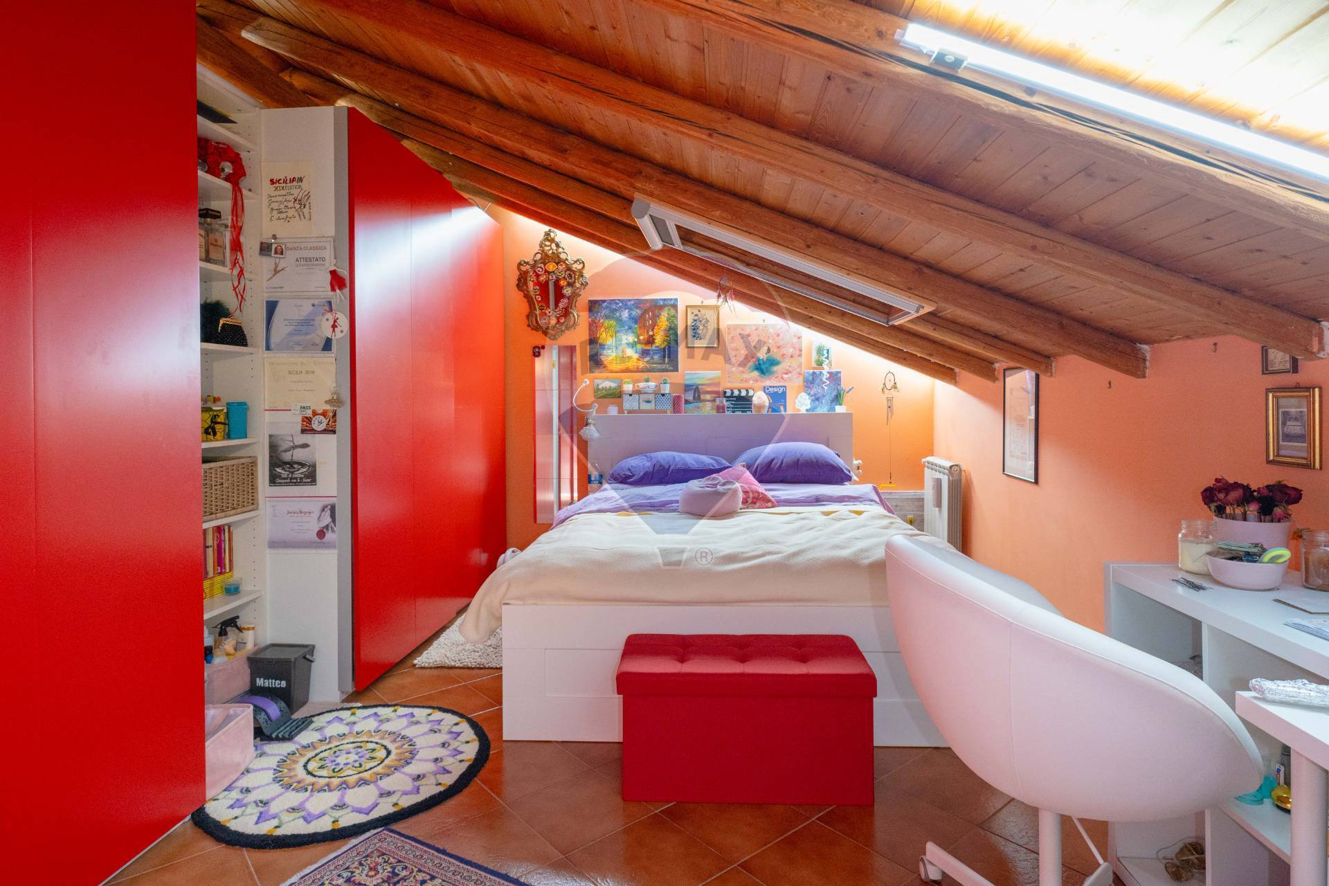 L’immobile situato al secondo piano ( no ascensore ) è composto da ingresso su salone doppio con camino e due affacci balconati, un corridoio disimpegna una cucina abitabile, una camera matrimoniale, bagno con vasca, un ripostiglio ed una lavanderia con servizio e box doccia; tramite una scala interna si accede in mansarda dove troviamo un ampio open space attualmente adibita a camera e studio e zona svago,