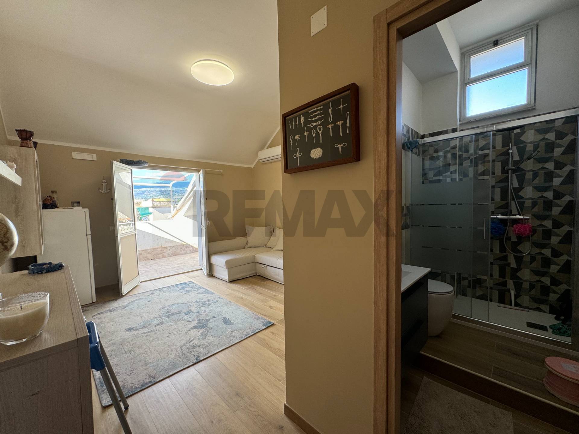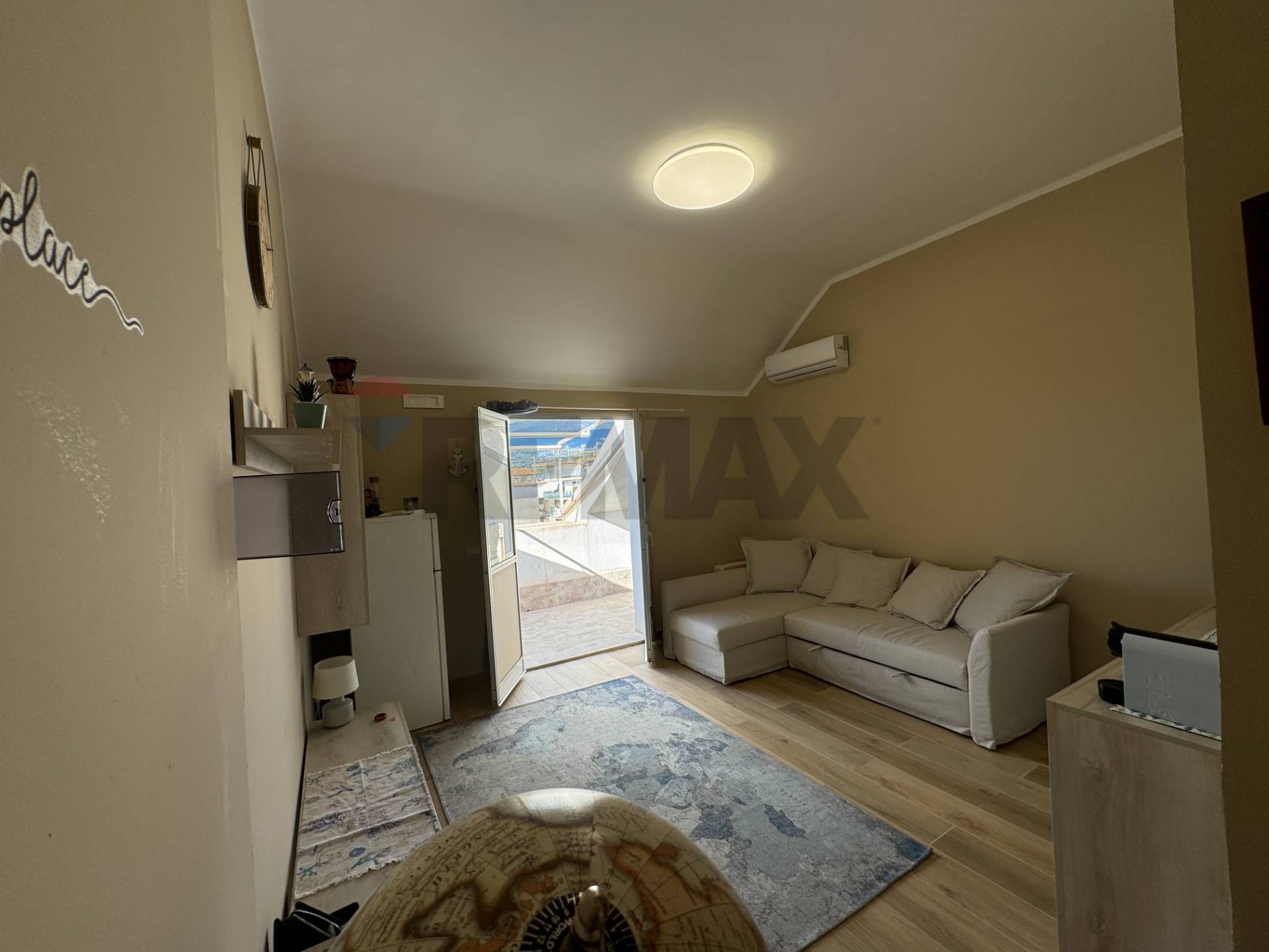 Monolocale di 30 mq catastali, situato al 5° e ultimo piano di un edificio a Calatabiano, in posizione strategica al confine con Giardini Naxos.