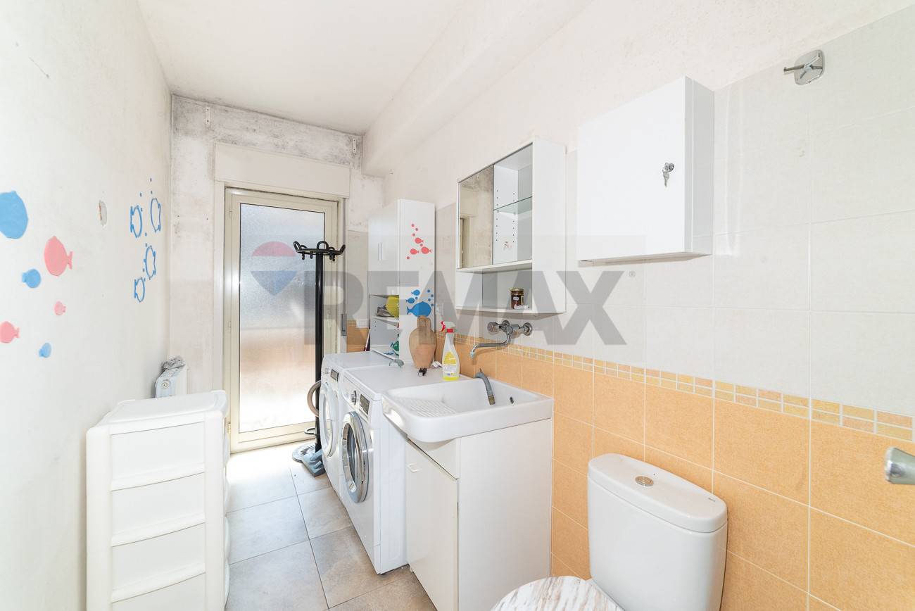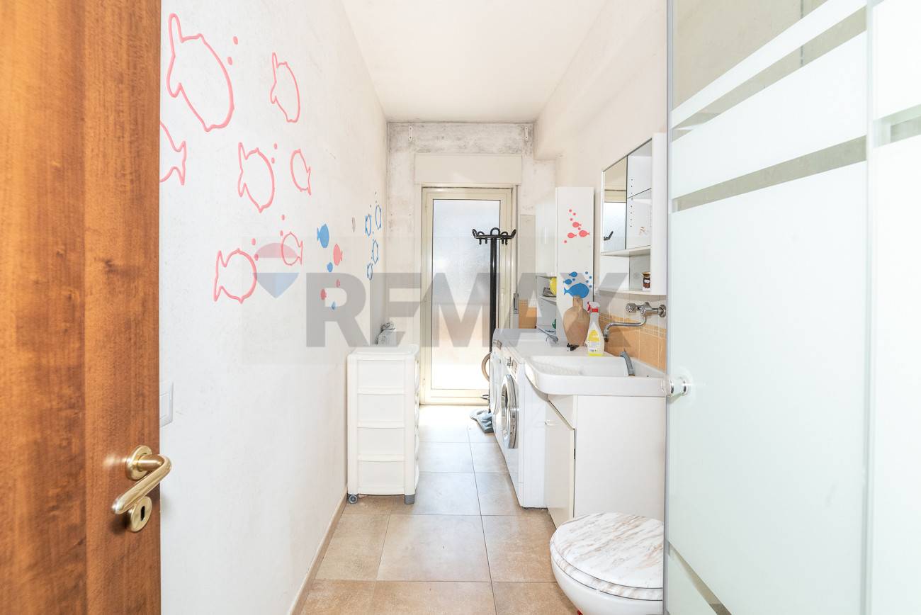 ingresso su ampio salone con affaccio su balcone, un corridoio conduce ad una cucina abitabile con possibilità di realizzare un grande open space, in seguito ad un bagno con doccia, una lavanderia con secondo servizio, due comode camere da letto, un’ampia camera matrimoniale e infine un ripostiglio.
