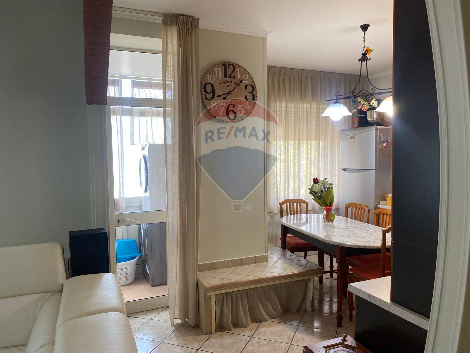 Allingresso troviamo un ampio ed elegante salone, organizzato con angolo salotto e zona TV, dal quale si accede a una cucina funzionale e accogliente. La cucina dispone di un balcone verandato, dotato di ripostiglio e un pratico secondo servizio adibito a lavanderia.