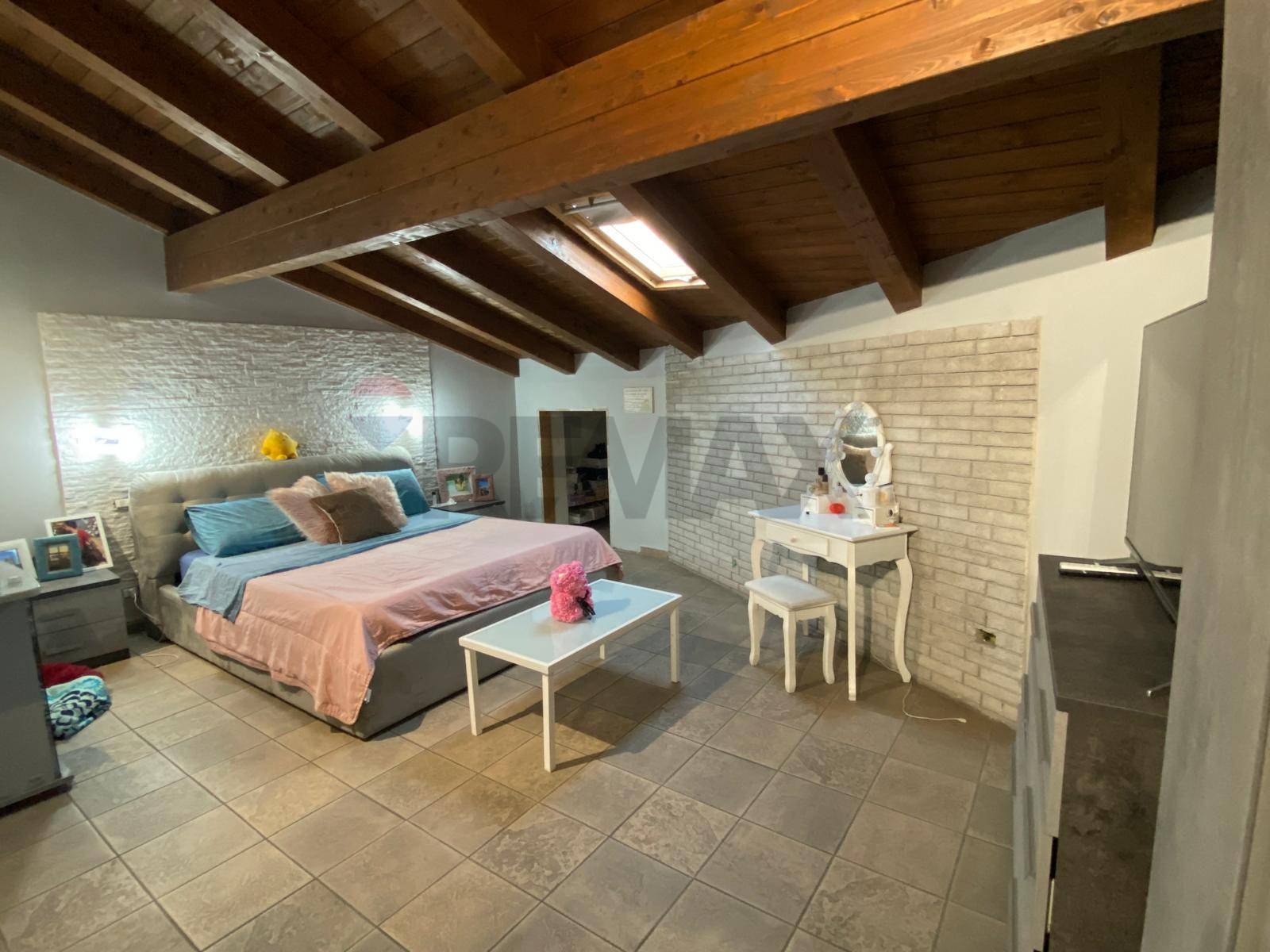 Entrando ci troviamo in una saletta d’ingresso dalla quale si accede ad una bella cucina soggiorno open space , da qui si apre il corridoio che conduce ad una prima camera da letto con affaccio su un terrazzino ed al bagno finestrato dove è presente una bella e grande doccia, da una moderna scala interna saliamo al piano superiore mansardato con uno splendido tetto in legno con travi a vista ,dove troviamo una seconda camera senza finestra (ma volendo si può mettere una velux a tetto) adatta ad uno studio o ad uso stireria o ancora come cabina armadio e poi la stanza da letto padronale con dei ripostigli annessi , una secondo bagno con doccia dal quale si puo’ accedere ad un bel terrazzo di circa 28 mq , al terrazzo vi si puo’ accedere anche dal corridoio.