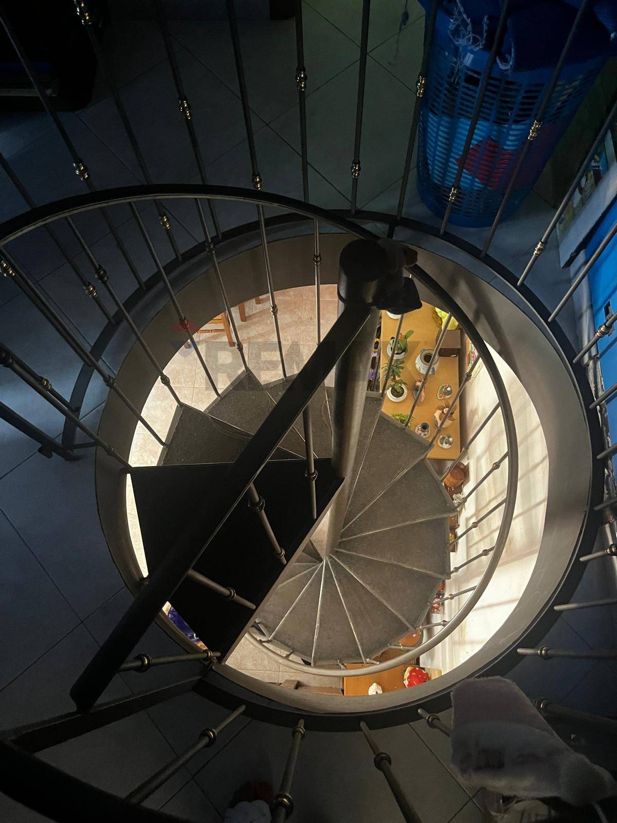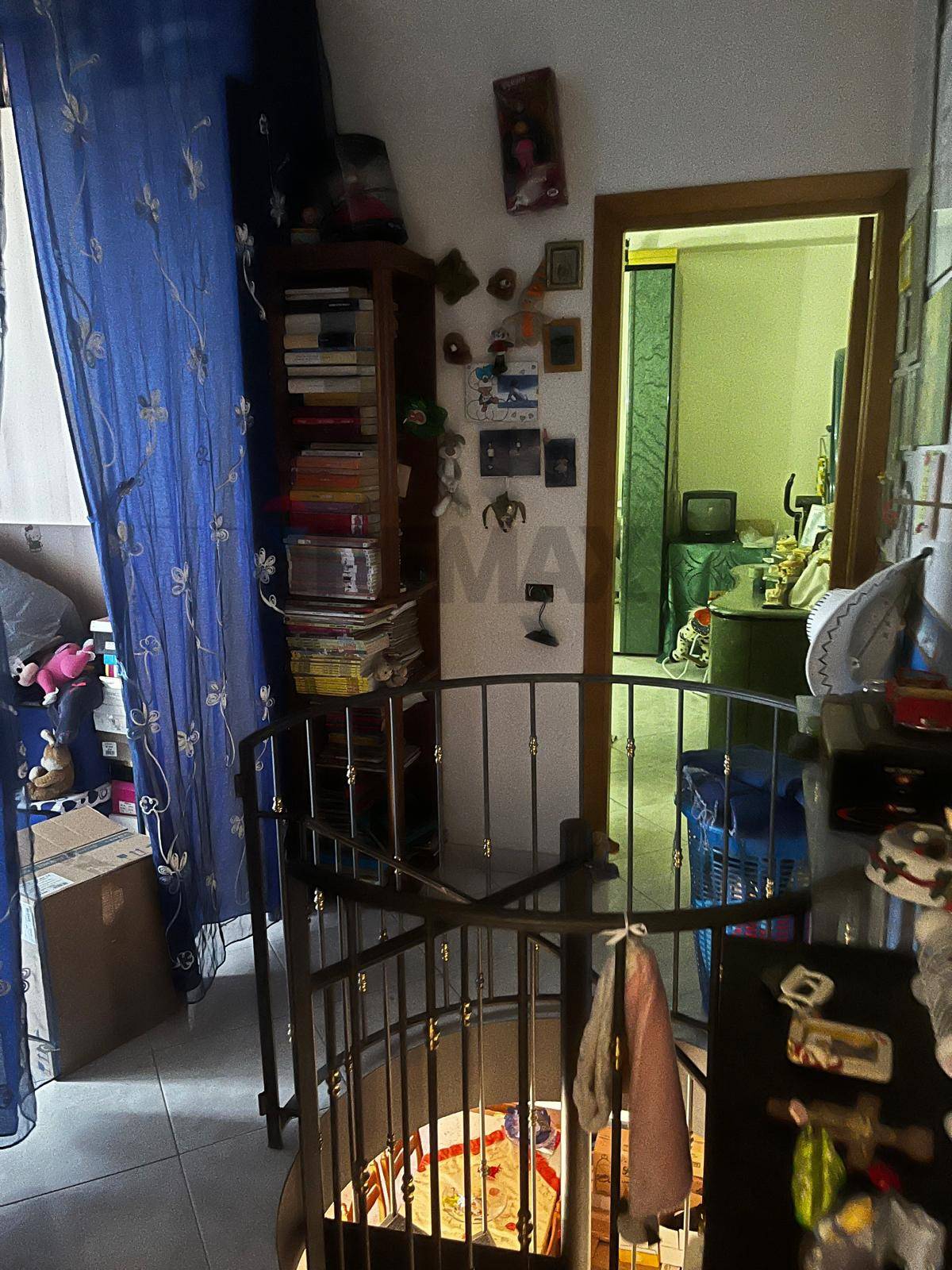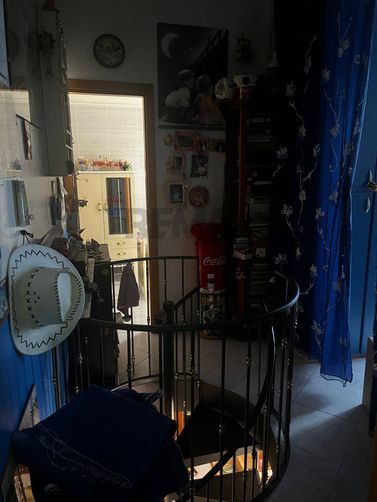 L’accesso al piano superiore è possibile tramite una scala interna a chiocciola