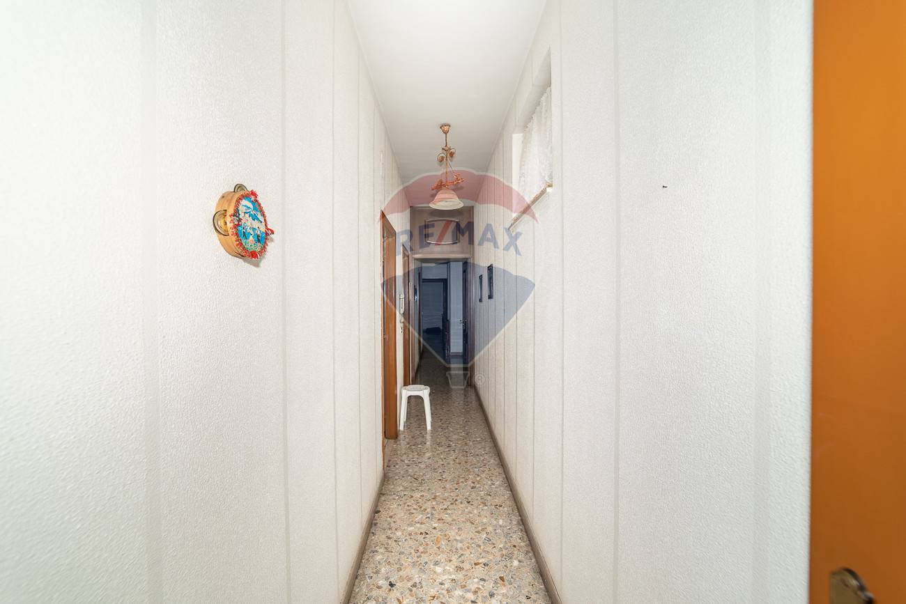 Qui un ampio corridoio porta alle tre camere da letto matrimoniali, tutte collegate da un lungo balcone con affaccio su via Rametta, e al ripostiglio.