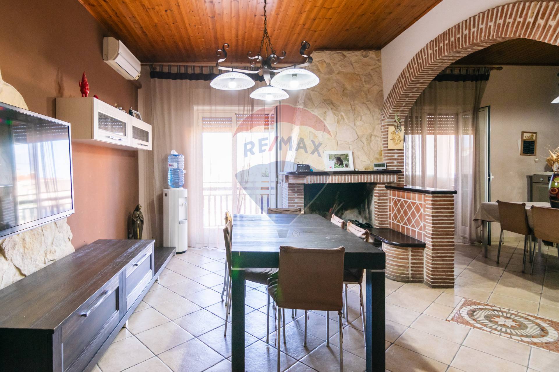 – Zona pranzo con camino