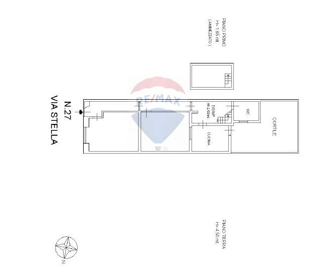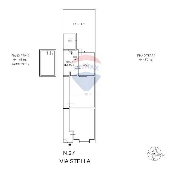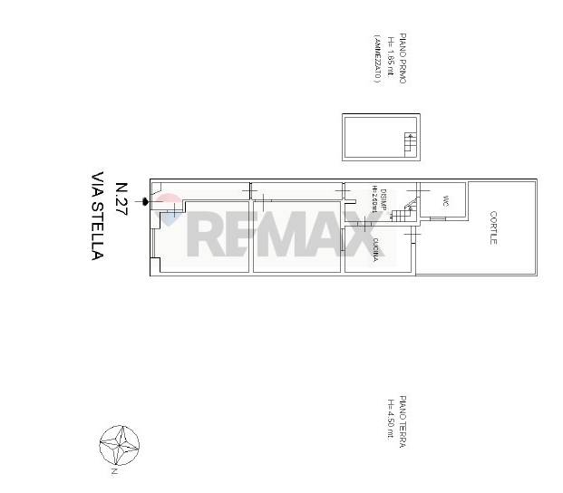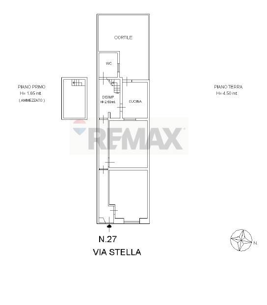 L’ingresso si apre su un corridoio che disimpegna gli ambienti: due comode camere, una cucina abitabile con affaccio sul cortile, un bagno e un piano ammezzato, ideale come spazio aggiuntivo, studio privato o ripostiglio.