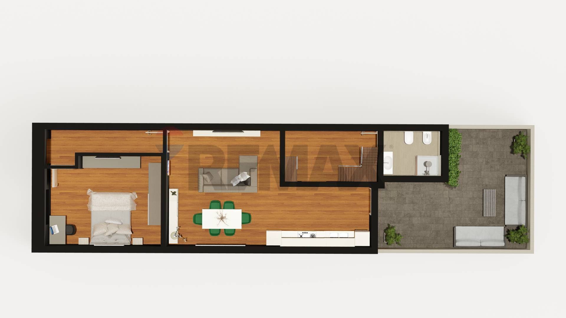 E’ disponibile un rendering professionale, realizzato per evidenziare la funzionalità e l’efficienza degli spazi, consentendo di apprezzare chiaramente le potenzialità dell’immobile e la qualità della distribuzione interna apportando piccole variazioni.