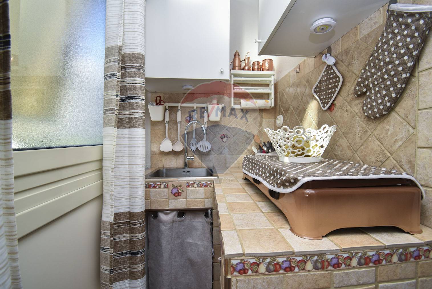 Gli spazi interni sono ben distribuiti, è composto da tre locali, cucina soggiorno pranzo, due camere da letto e un bagno, ideale per una coppia o una piccola famiglia.