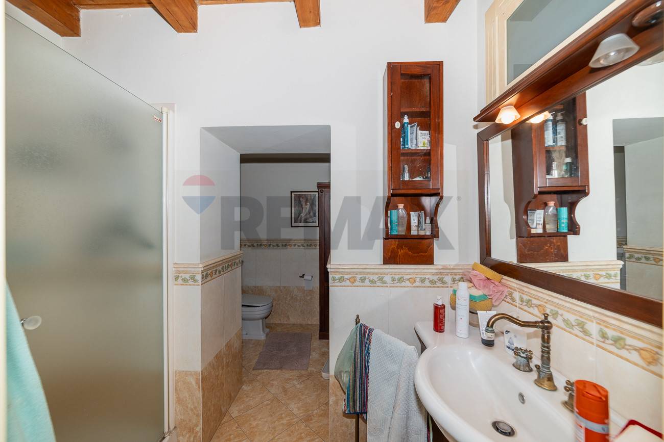 ingresso su ampio disimoegno dal quale tramite scala interna si accede al piano ammezzato , dove troviamo una camera da letto con bagno ed un ripostiglio; dallo stesso disimpegno si accede alla cucina , servita da una lavanderia , proseguendo troviamo un ampio bagno con doccia , sala da pranzo, salone ed una camera matrimoniale .
