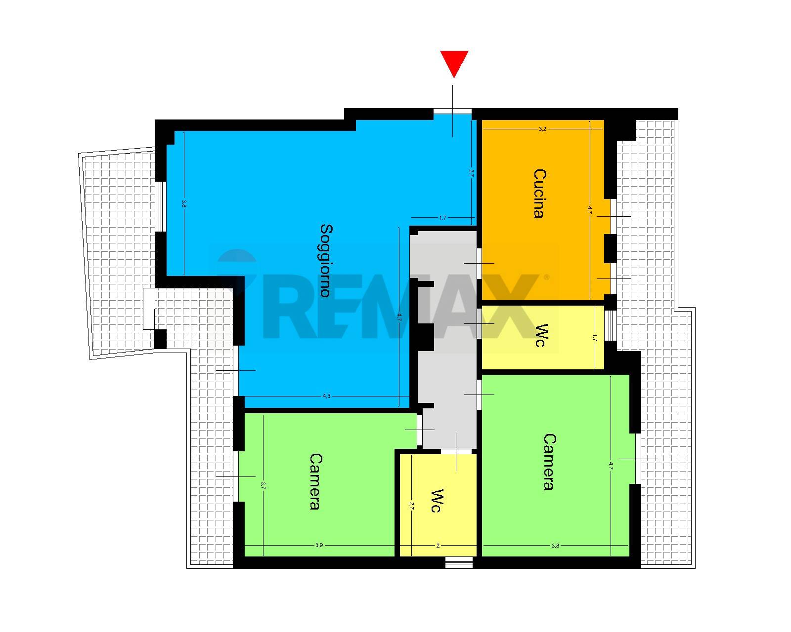 Limmobile si colloca ad un piano rialzato, comprende ingresso, salone doppio, n° 2 camere da letto n° 2 bagni e cucina, balconi e terrazzi esterni, si estende su una superficie totale di mq 132, di cui mq 120 calpestabili.