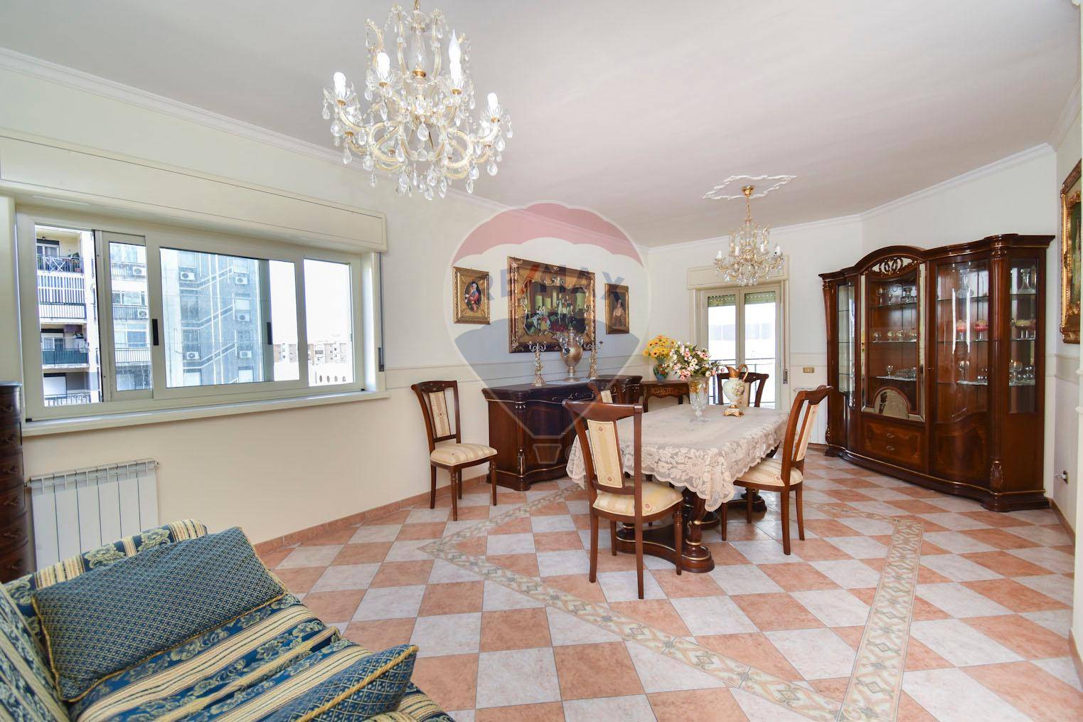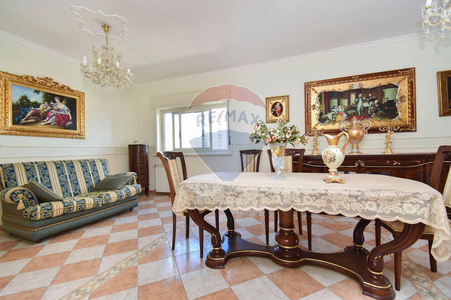 Lappartamento si apre su un ingresso accogliente che conduce a un ampio salone doppio con accesso al balcone principale.