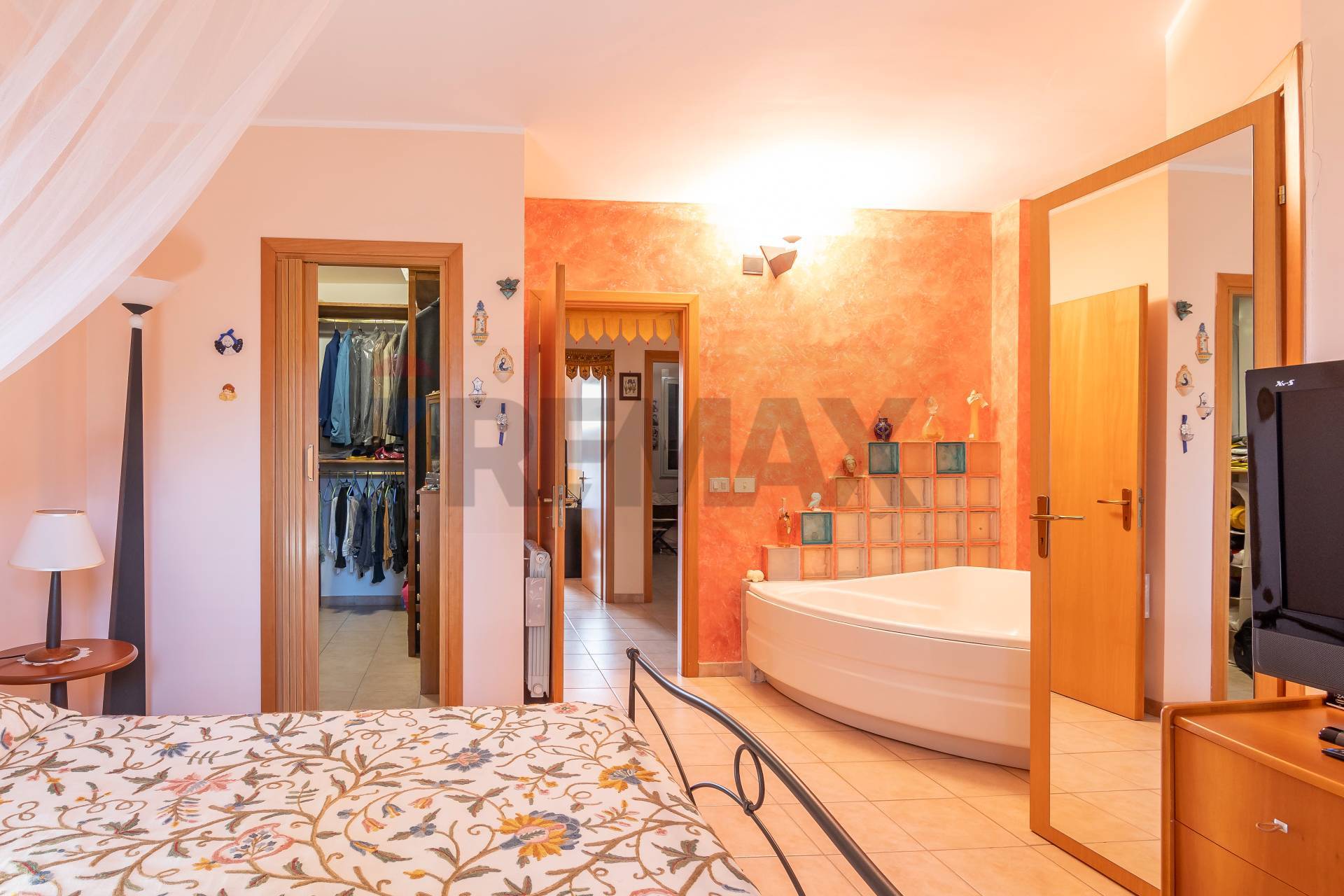 La zona notte offre due camere e una splendida matrimoniale con cabina armadio, vasca idromassaggio e bagno privato: un vero angolo di benessere personale.
