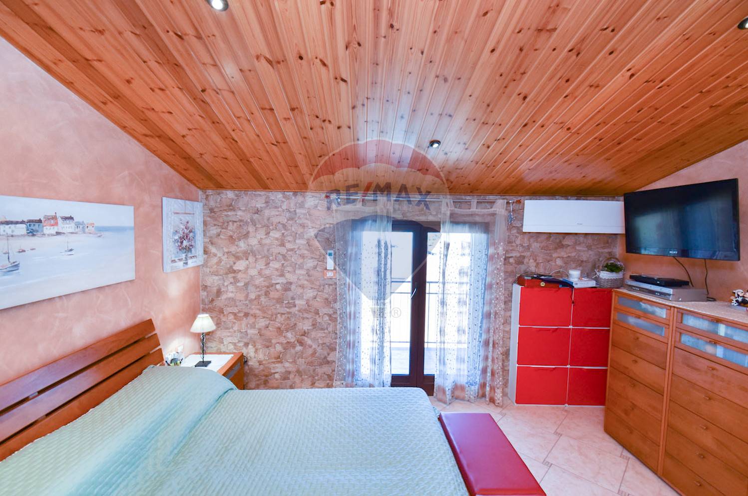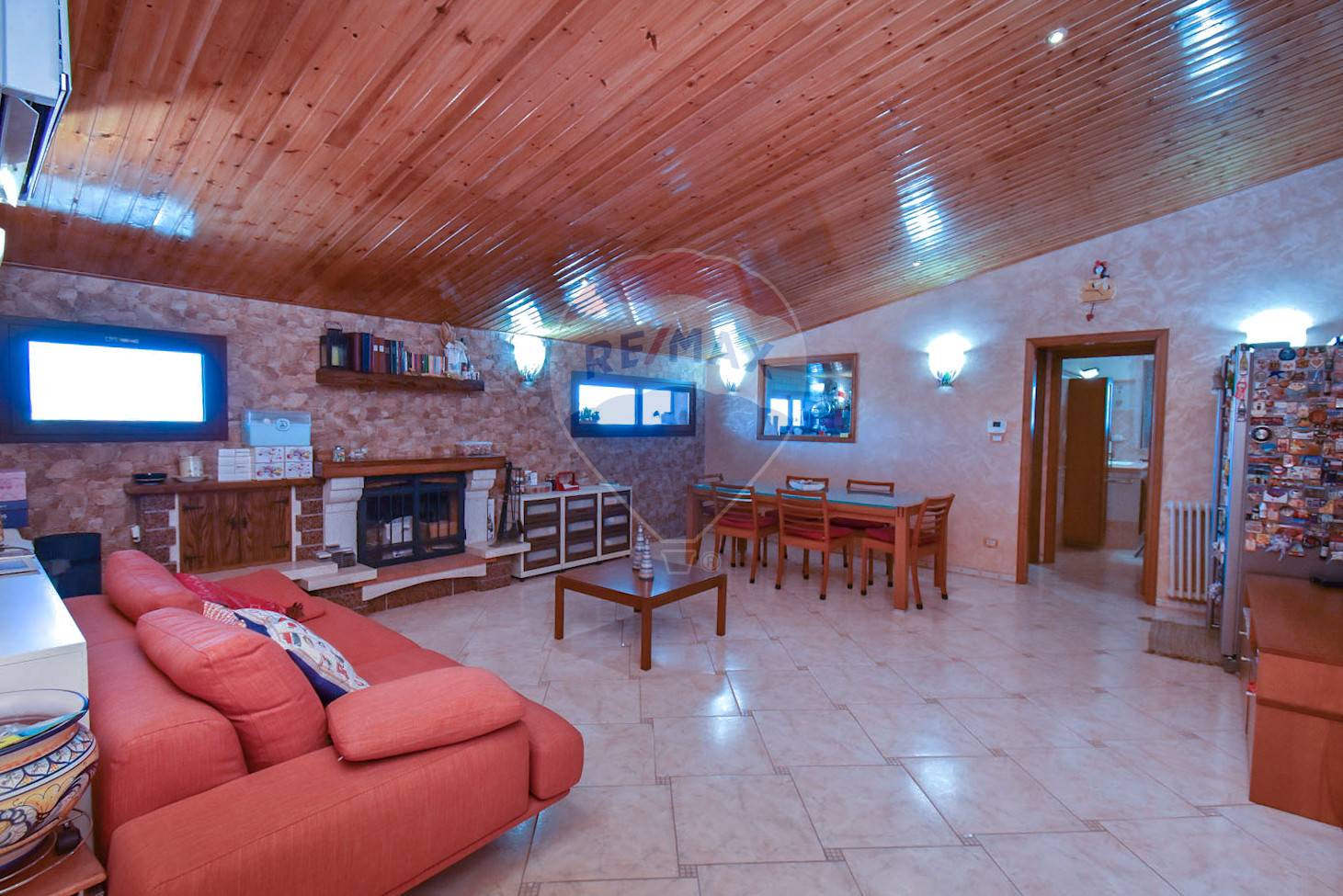 Ingresso diretto sull’ampia zona living di 60 mq circa con zona camino, cucina in muratura, camera da letto, cameretta, ampia cucina con affaccio su balcone terrazzato con lavanderia annessa e bagno.