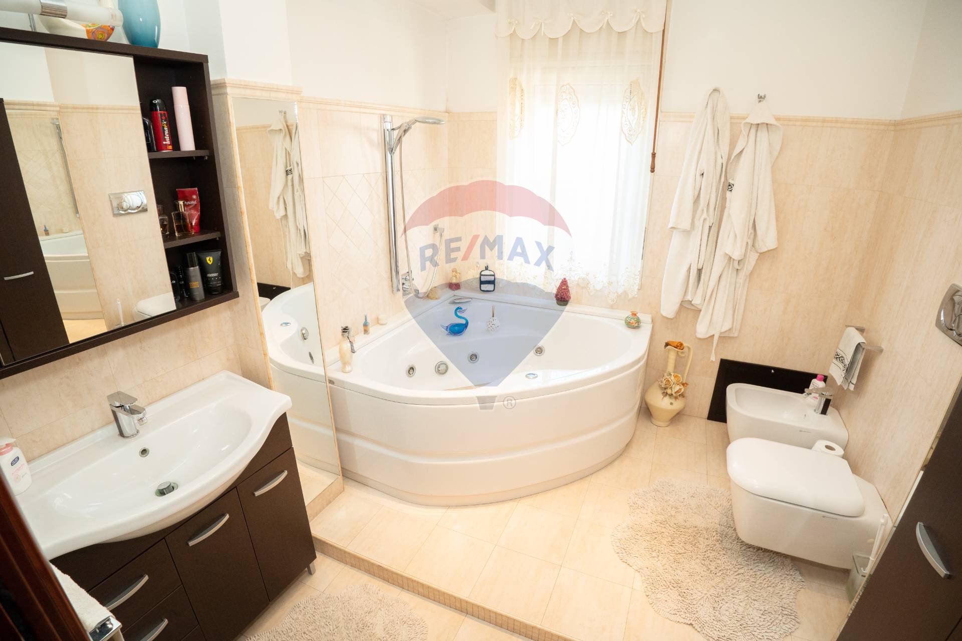 f) Bagno ampio con vasca e finestra;