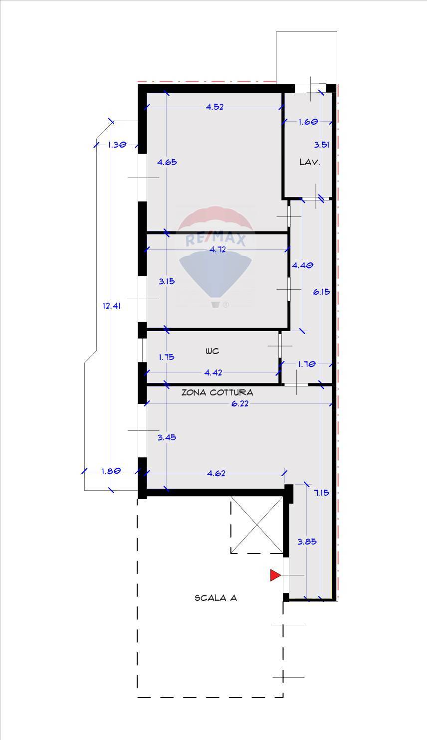 – ingresso soggiorno cucina da 3.5×5 m;