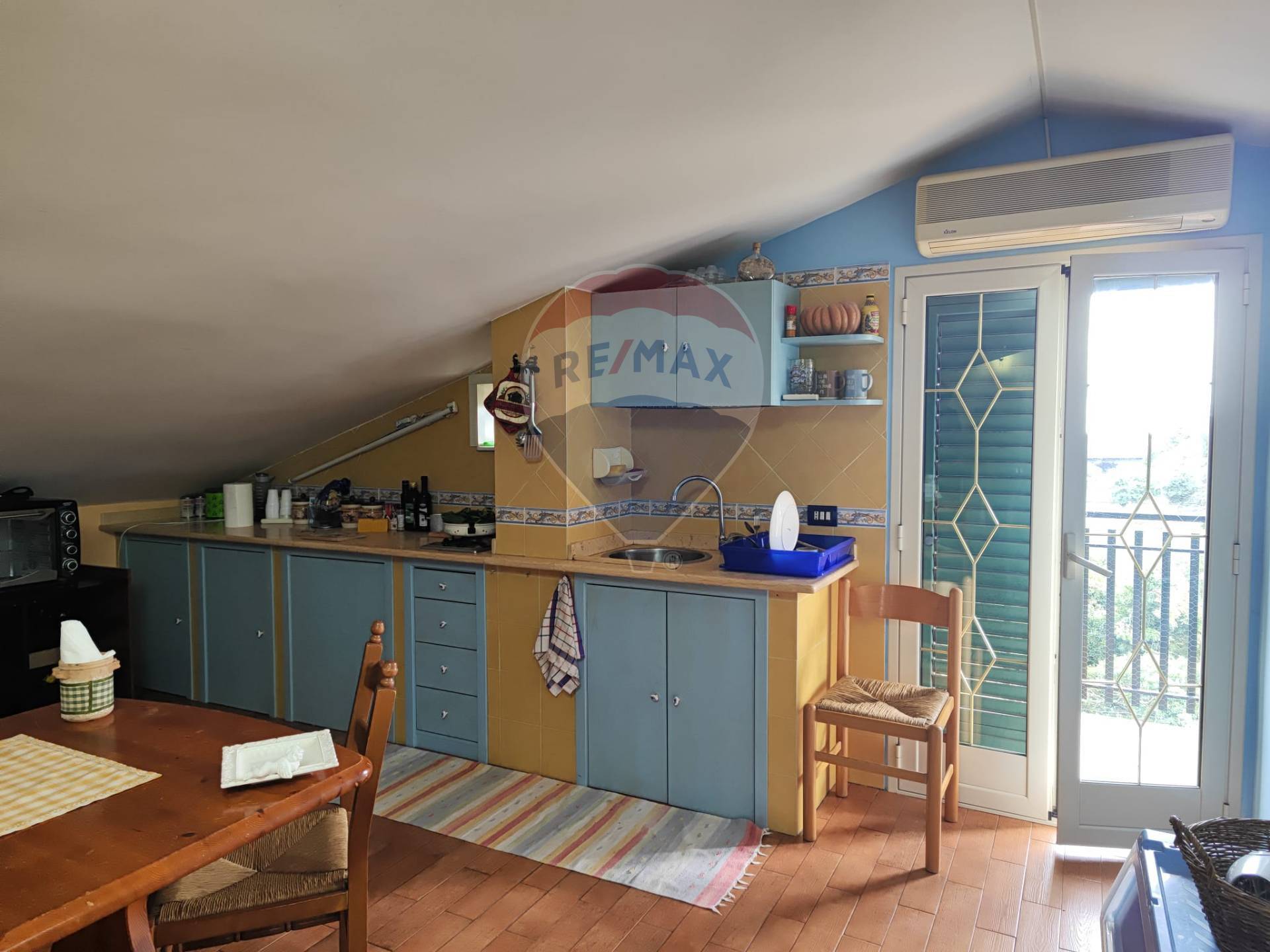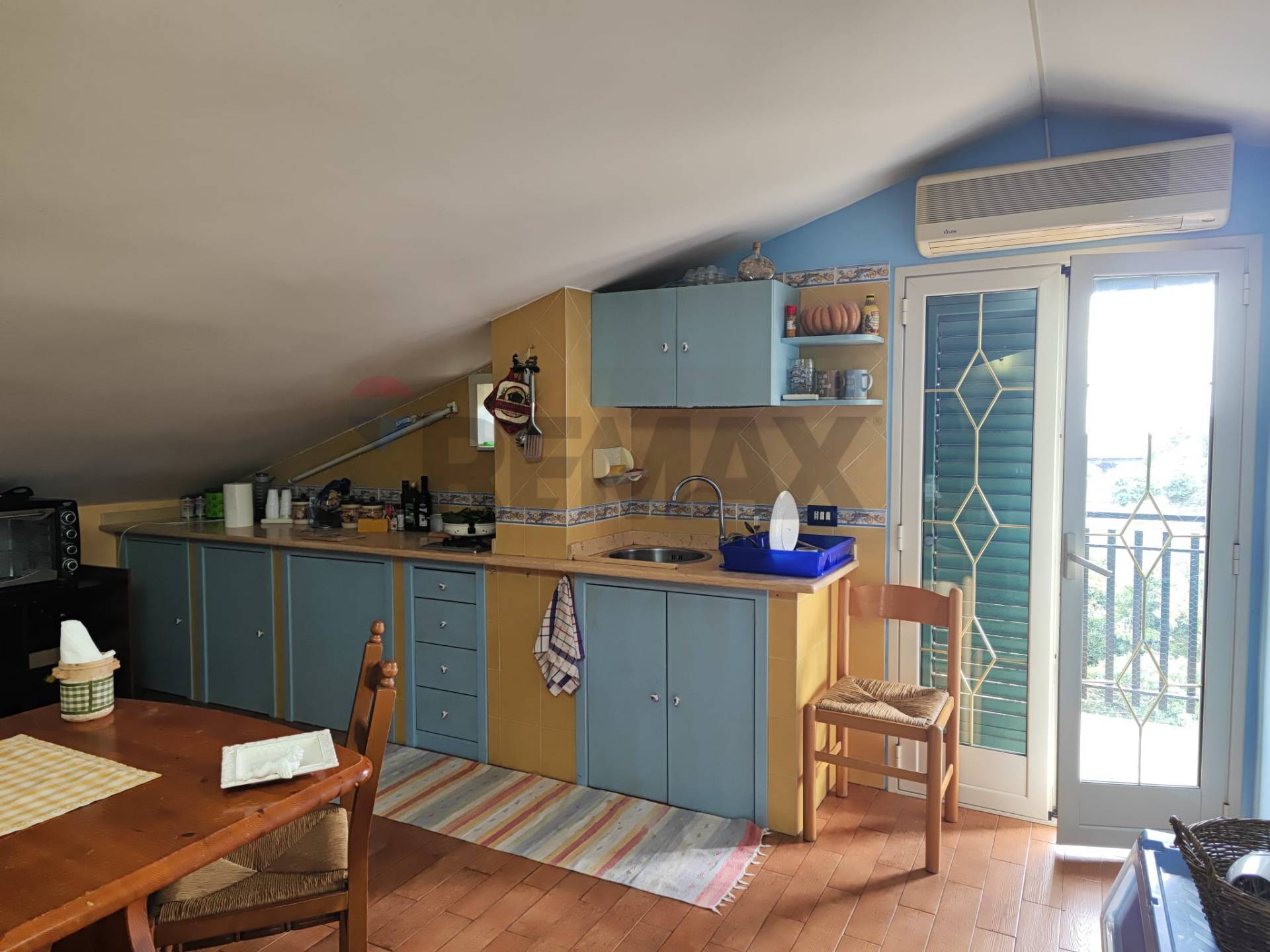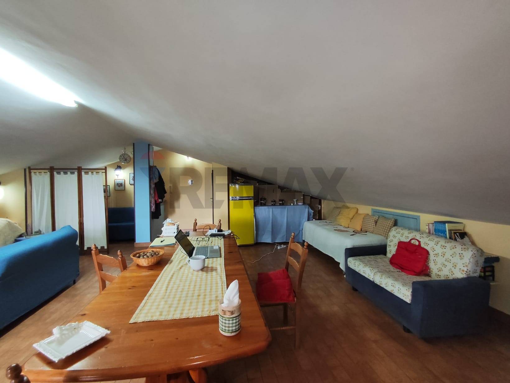 L’immobile si presenta in buone condizioni ed è composto da un comodo soggiorno, una cucina abitabile, bagno, doppio servizio e camera da letto, oltre ad ampi balconi a giro; la mansarda ha un ampio soggiorno-cucina con camino, bagno, e balcone.