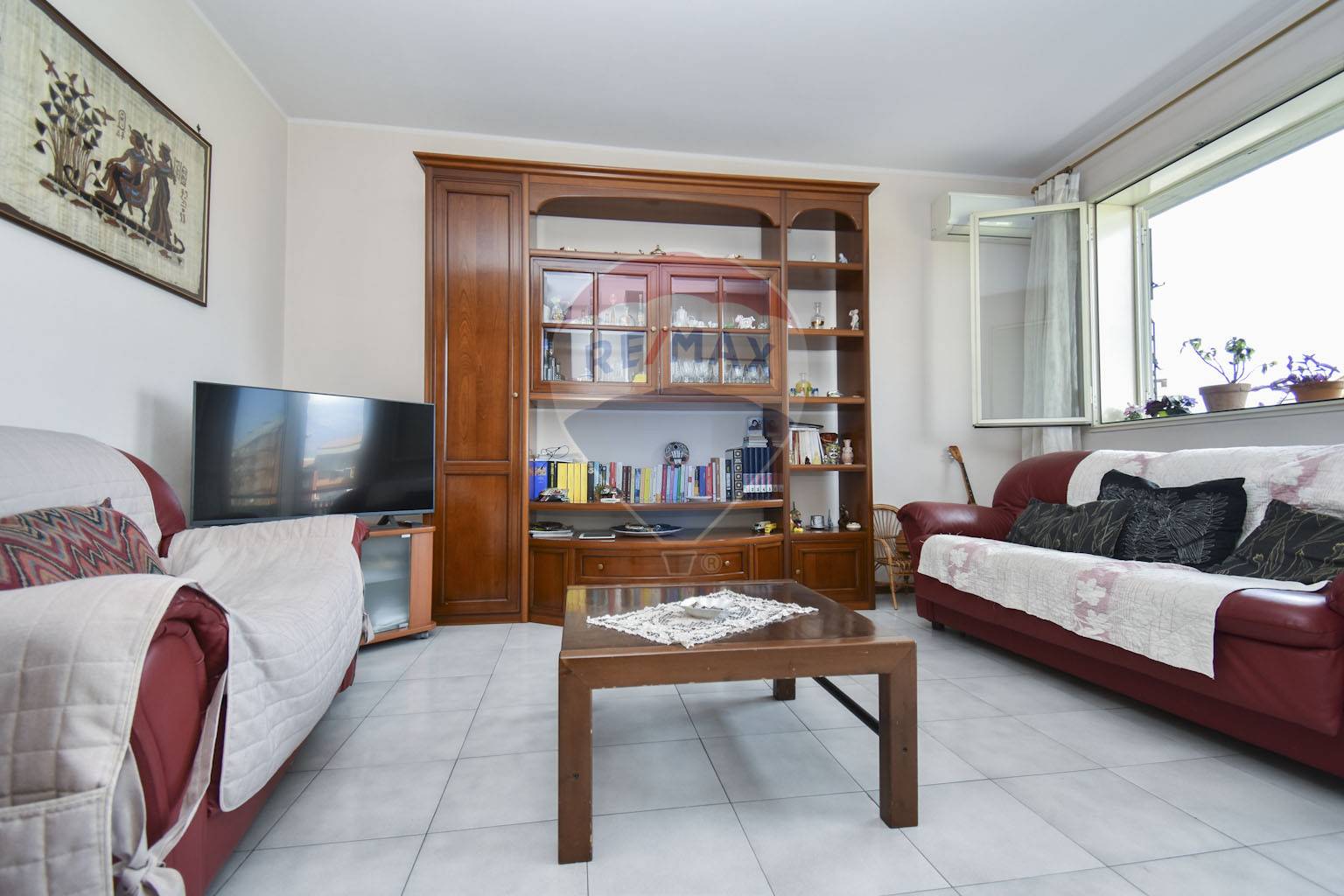 Primo piano senza ascensore. Ingresso su ampia zona living con finestra e porta che si affacciano sul balcone vista Etna. Attraverso un piccolo disimpegno troviamo la cucina con affaccio su comodo balcone laterale. A seguire bagno, lavanderia, camera matrimoniale e cameretta. Le stanze hanno tutte un’apertura all’esterno permettendo alla luce naturale di illuminare gli ambienti. L’appartamento è dotato di impianto di riscaldamento e un climatizzatore, infissi e veneziane in alluminio. Completa la vendita un posto auto di proprietà all’interno del cortile comune.