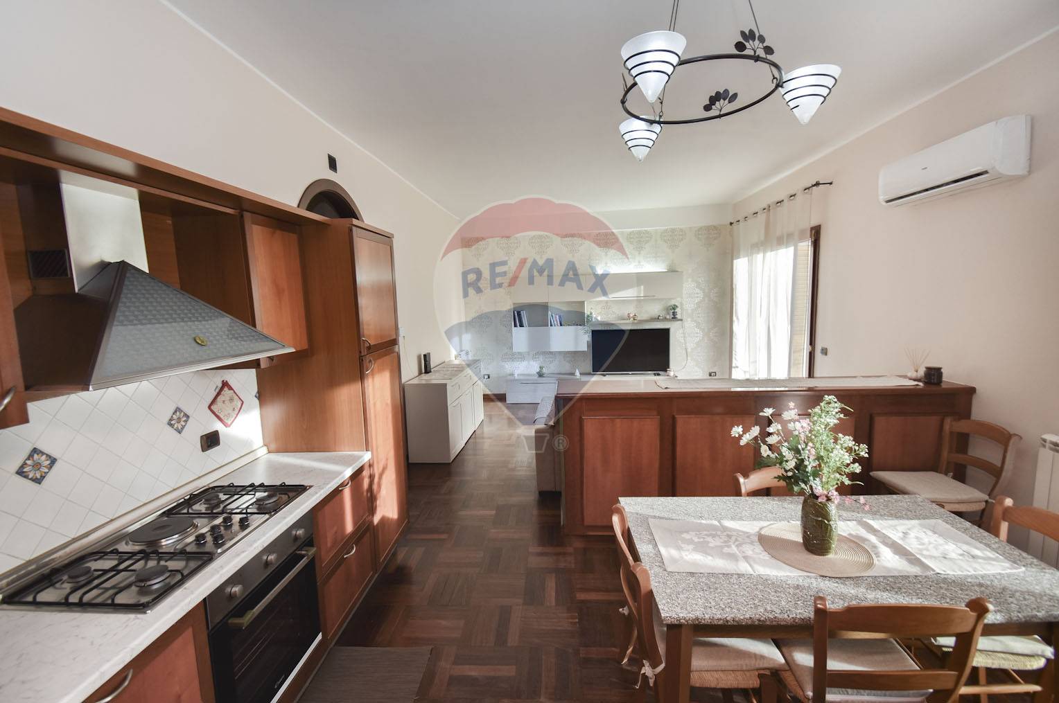 L’appartamento è composto da quattro locali ben distribuiti: un accogliente e spazioso soggiorno, una cucina abitabile dotata di tutti gli elettrodomestici necessari, due comode camere da letto e due bagni, uno con doccia, entrambi finemente rifiniti.