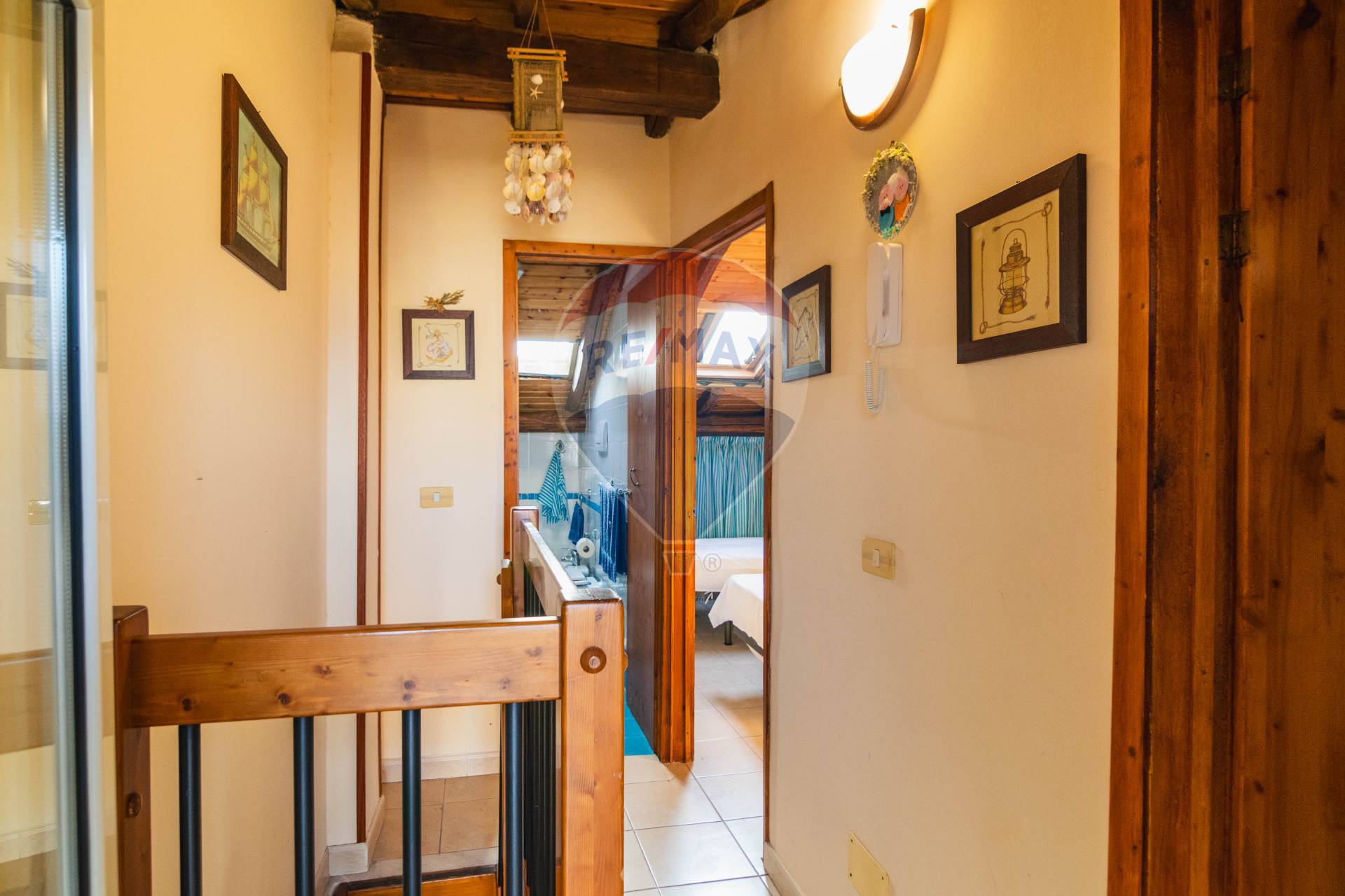Al piano superiore, altre 2 camera da letto matrimoniali con finestre velux, delle quali una che si affaccia su un secondo terrazzino con una stupenda vista mare. La lavanderia è posta in una nicchia di detto terrazzino e un bagno completano i servizi del 2° piano