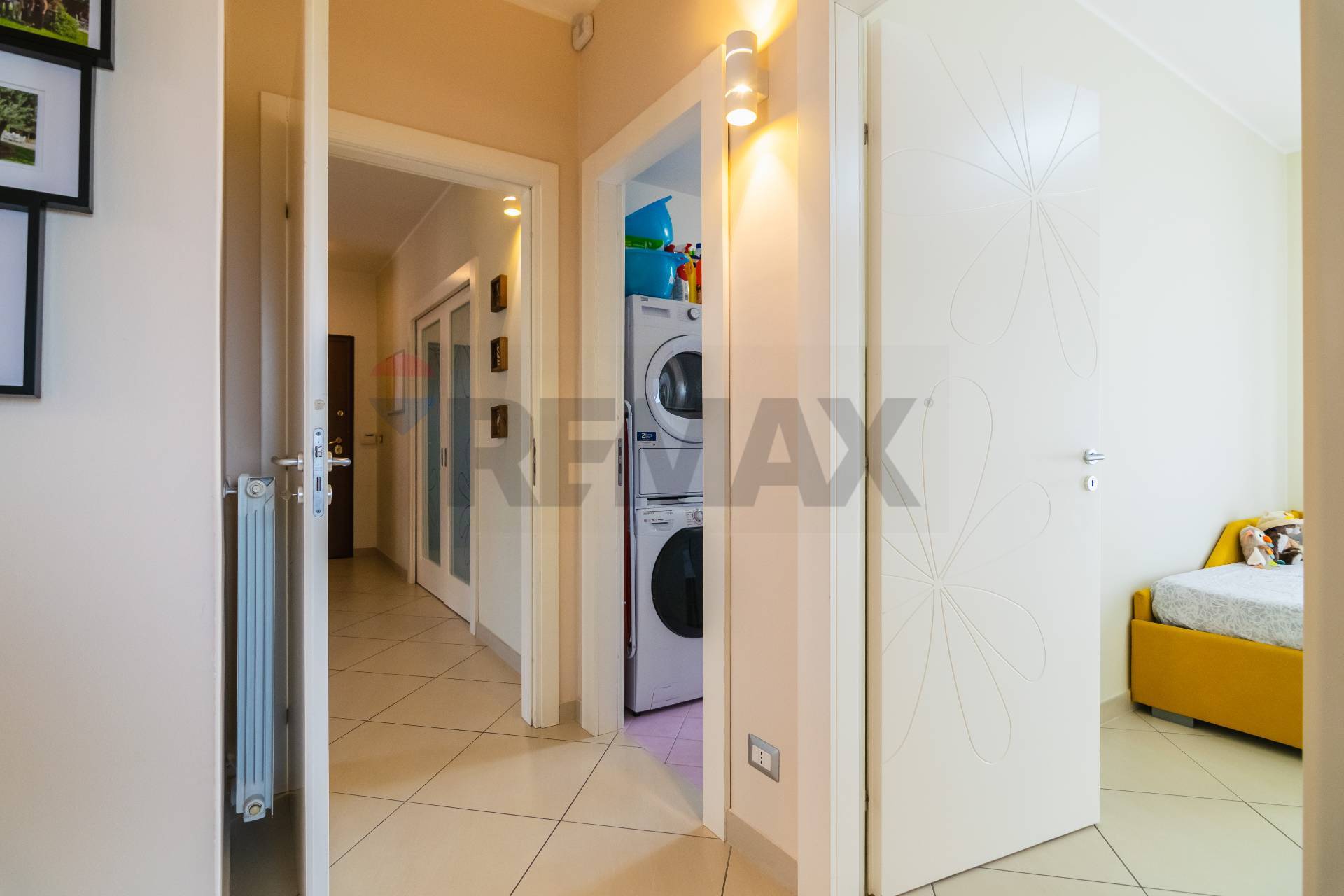 La zona notte, separata da un disimpegno, comprende una cameretta, una camera matrimoniale, un bagno con vasca e una lavanderia con