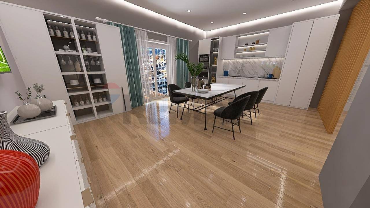 The apartment is being renovated and will be completely renovated as shown in the 3D rendering in the photo, the electrical and water systems, false ceilings with spotlights, air conditioning and heating systems, wood-effect flooring will also be completely redone and the two bathrooms will be complete with sanitary fixtures, shower cubicles as shown in the rendering in the photo, the walls will be clad in veneer.
