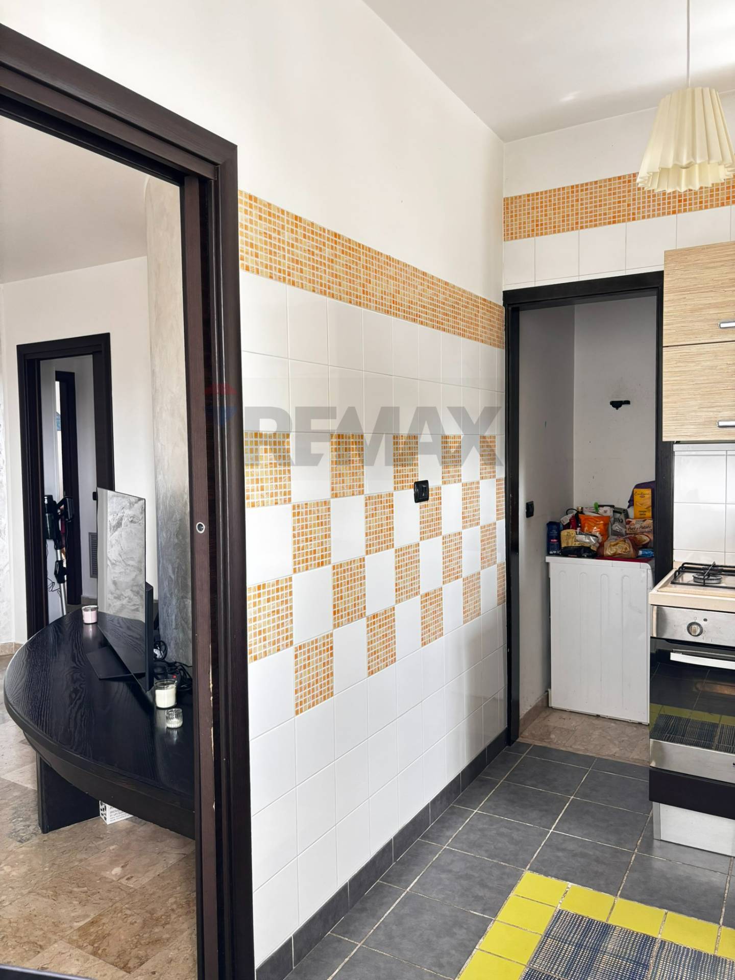 Entrando dalla porta di ingresso, troviamo una mezza parete che crea un disimpegno con l’ampio e luminoso salone, alla destra troviamo una porta per accedere alla zona notte mentre in fondo, troviamo l’accesso alla funzionale cucina e comoda lavanderia, indispensabile in un’appartamento.
