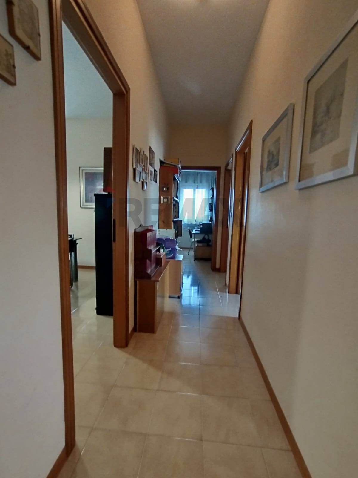 Gli spazi sono ben distribuiti, luminosi e arieggiati. L’appartamento è composto da ingresso su corridoio, un ampio salone-soggiorno, con zona pranzo e veranda vista mare, disimpegno, una camera da letto, due camerette, 2 bagni, lavanderia esterna, comoda e spaziosa cucina abitabile e infine un ripostiglio.