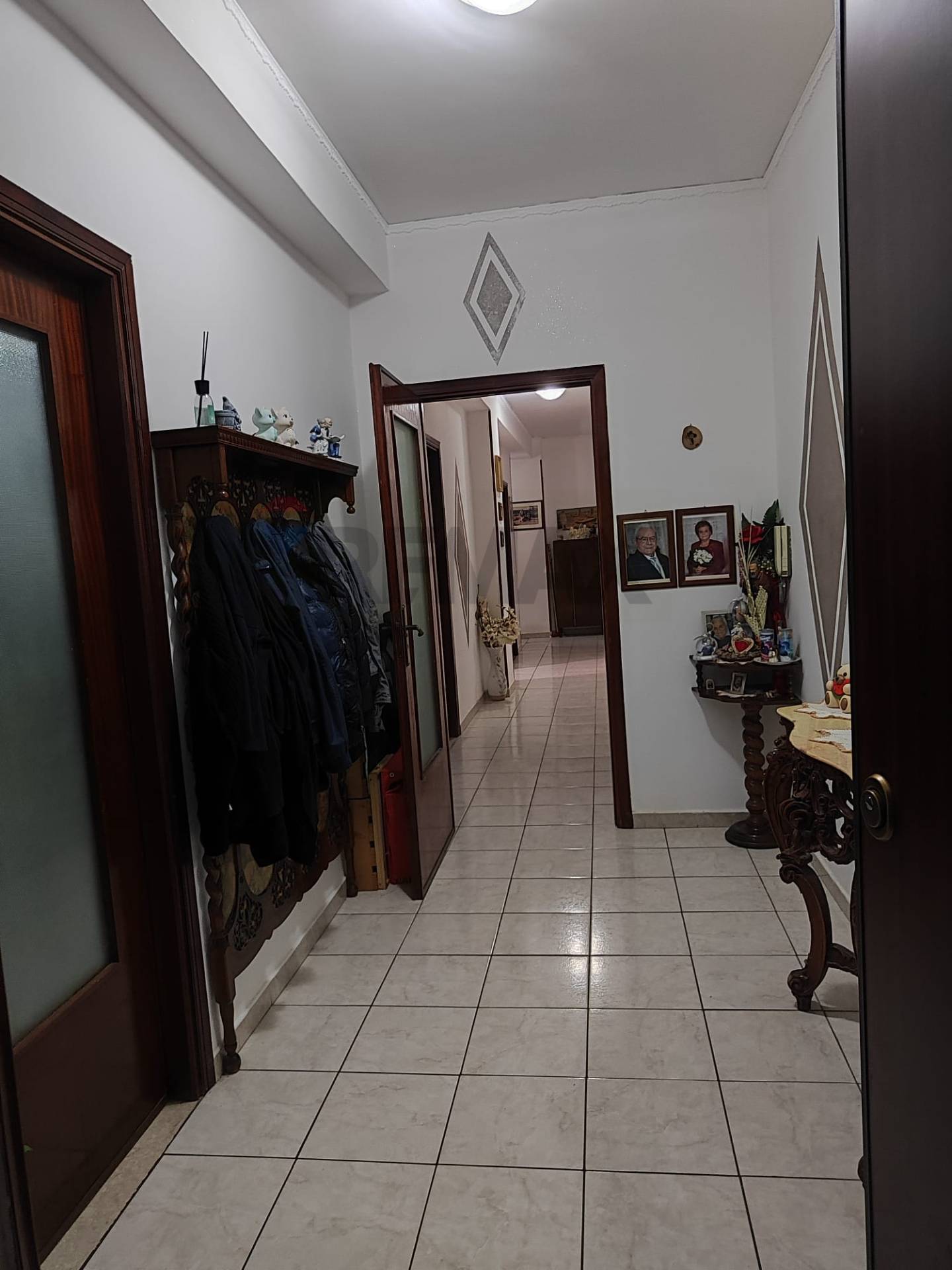 L’ingresso si apre su un disimpegno, al cui lato vi è un’ampia camera. A seguire un lungo corridoio che permette di accedere alle varie camere: cucina, camera da letto, ripostiglio, bagno, doppio servizio e un soggiorno doppio.