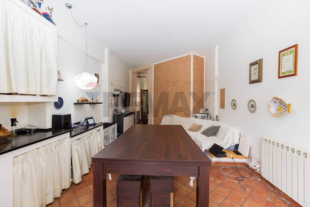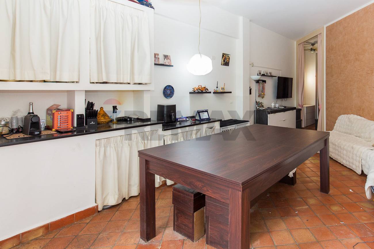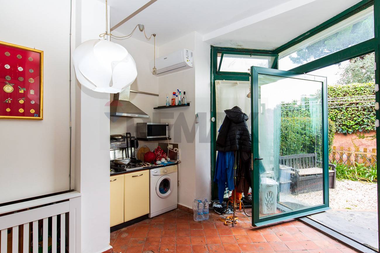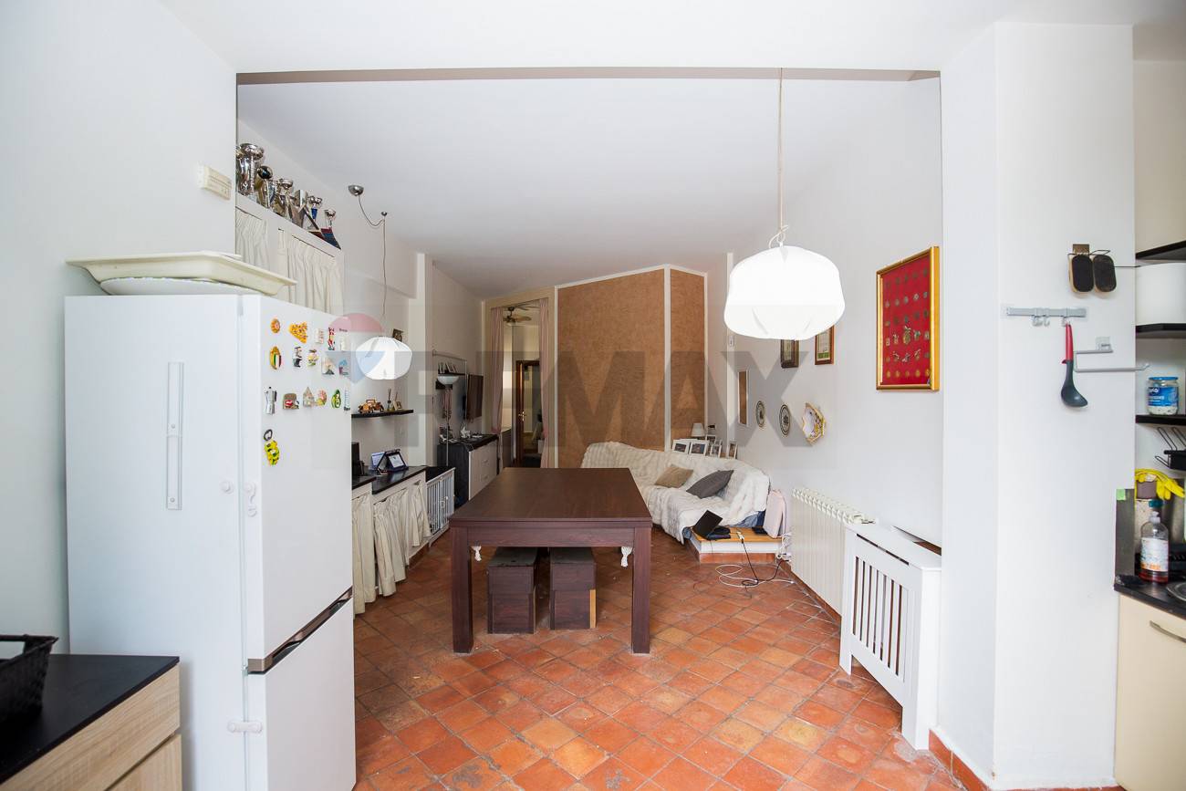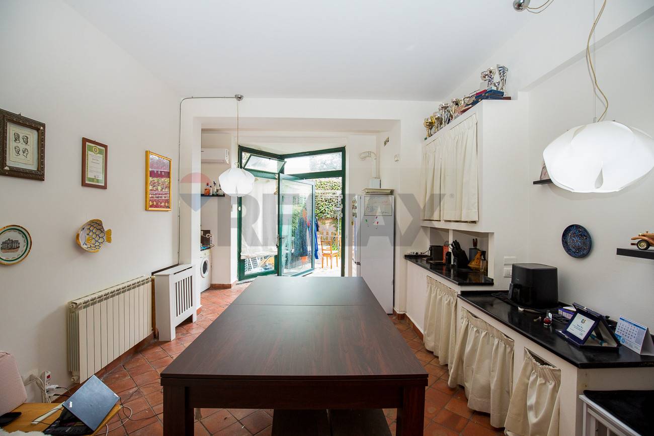 Lingresso principale si apre direttamente su una cucina molto ampia, ambiente luminoso e funzionale, ideale come spazio conviviale. Attualmente sul lato destro è presente un angolo cottura con lavatrice, soluzione che può essere facilmente riconfigurata per realizzare una comoda zona lavanderia separata, ottimizzando gli spazi in base alle proprie esigenze.