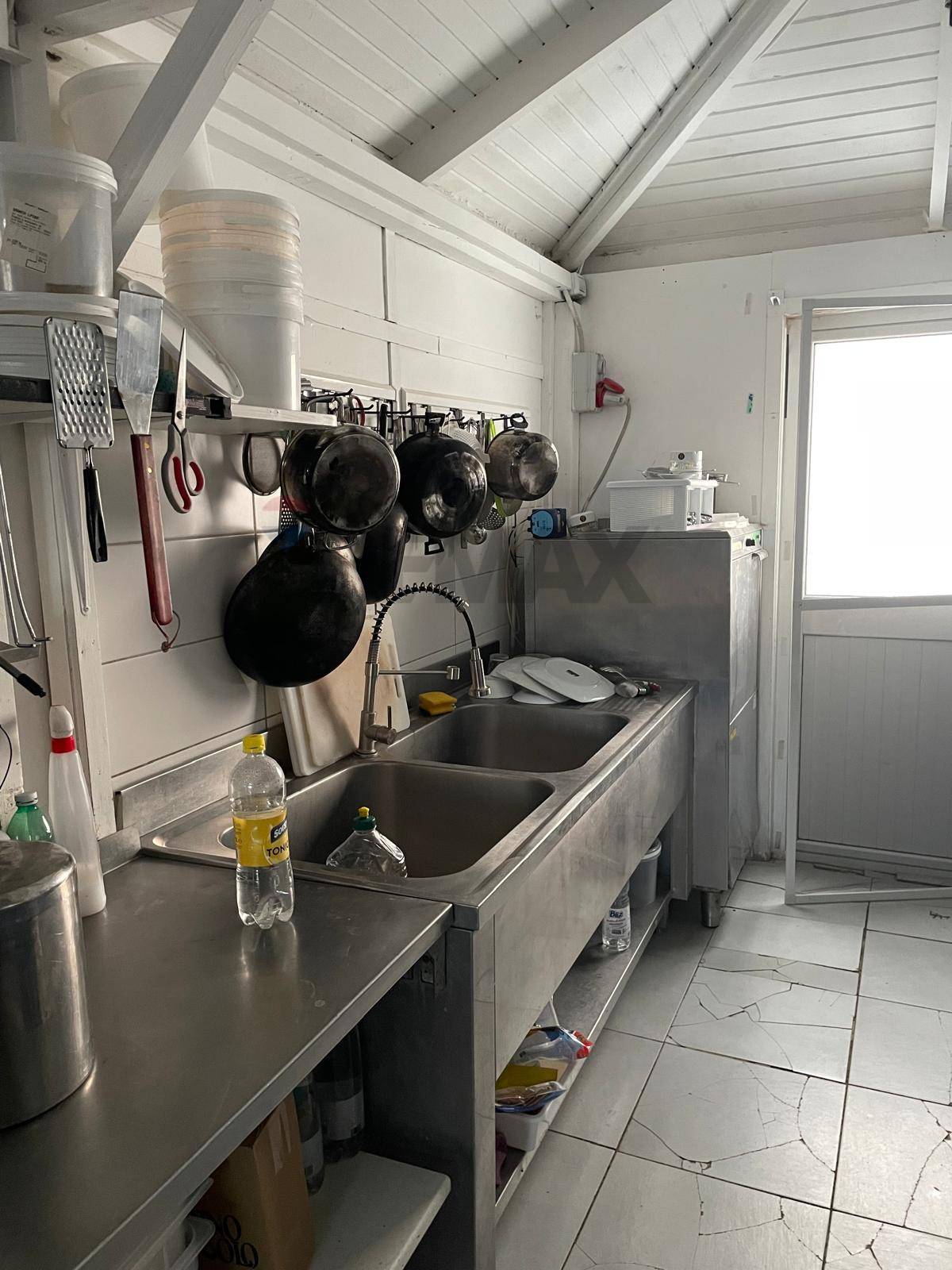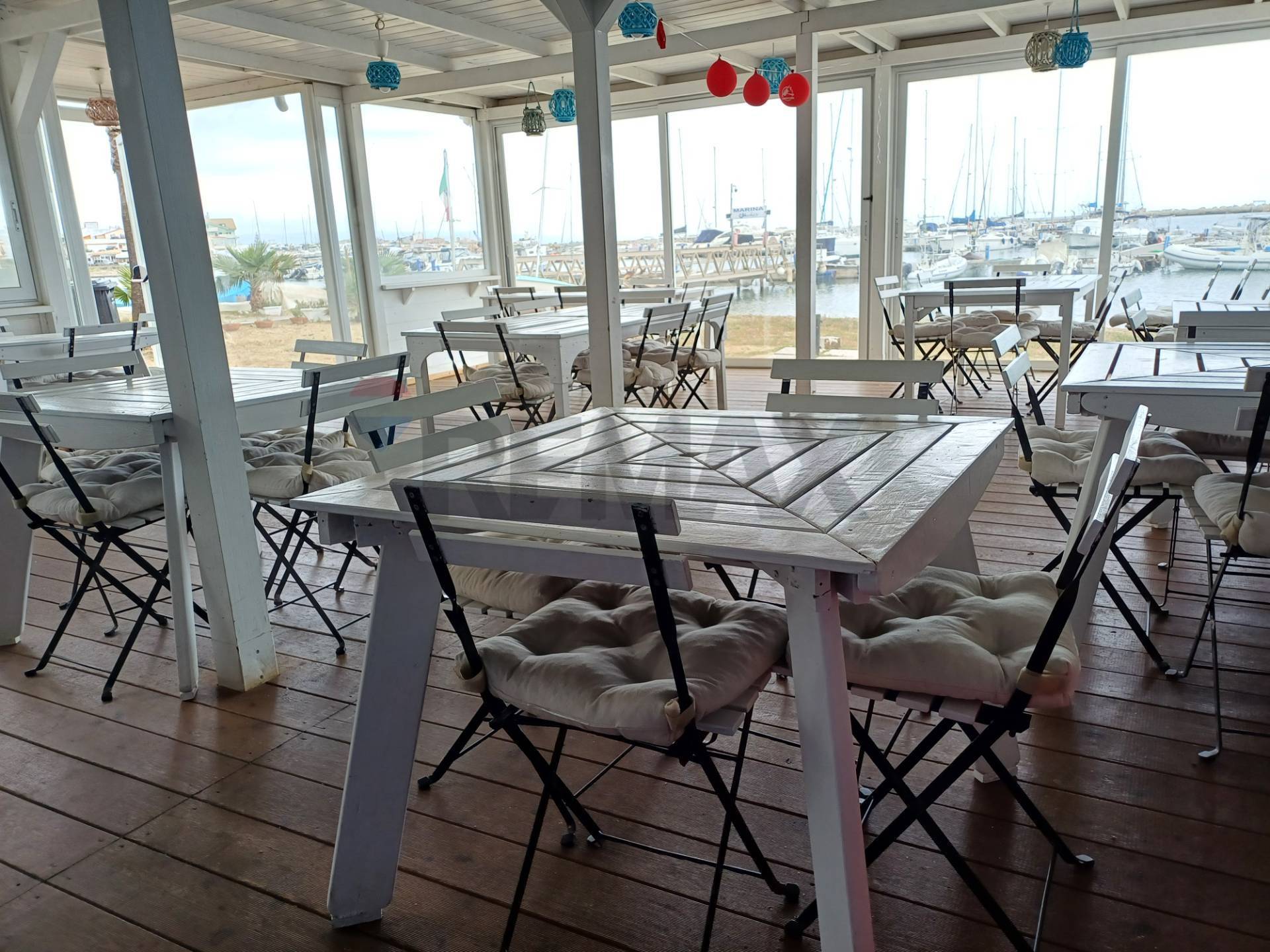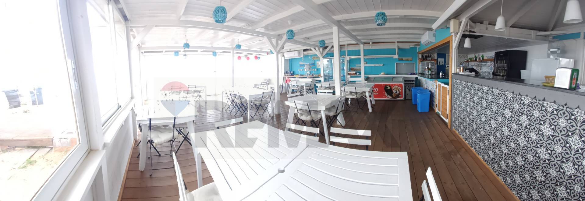 The restaurant seats approximately 60 people on a 60-square-meter veranda, out of a total of 100 square meters, overlooking the sea and featuring a fully equipped counter and kitchen.