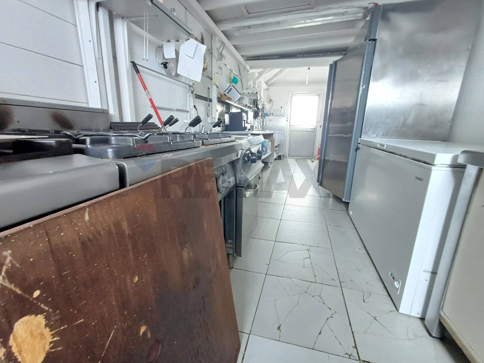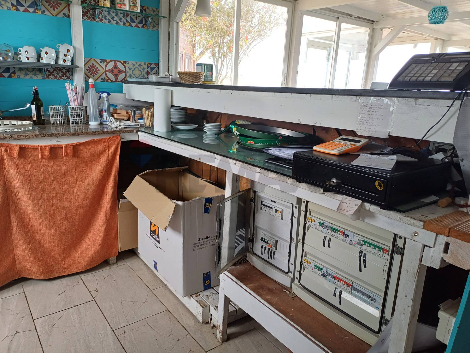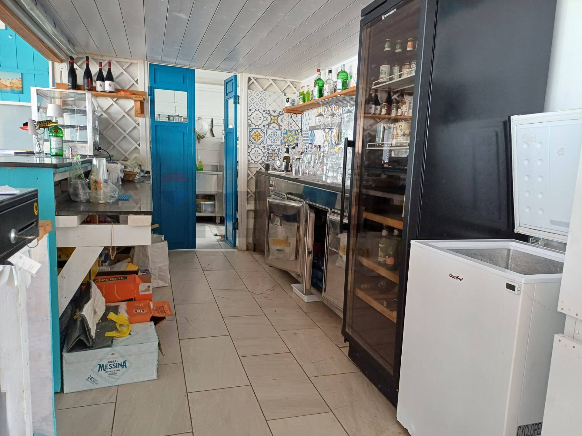 Il locale offre uno spazio di circa 60 posti a sedere in una veranda di 60 mq, su 100 mq complessivi, che si affaccia sul mare e dispone di un bancone e di una cucina attrezzati.