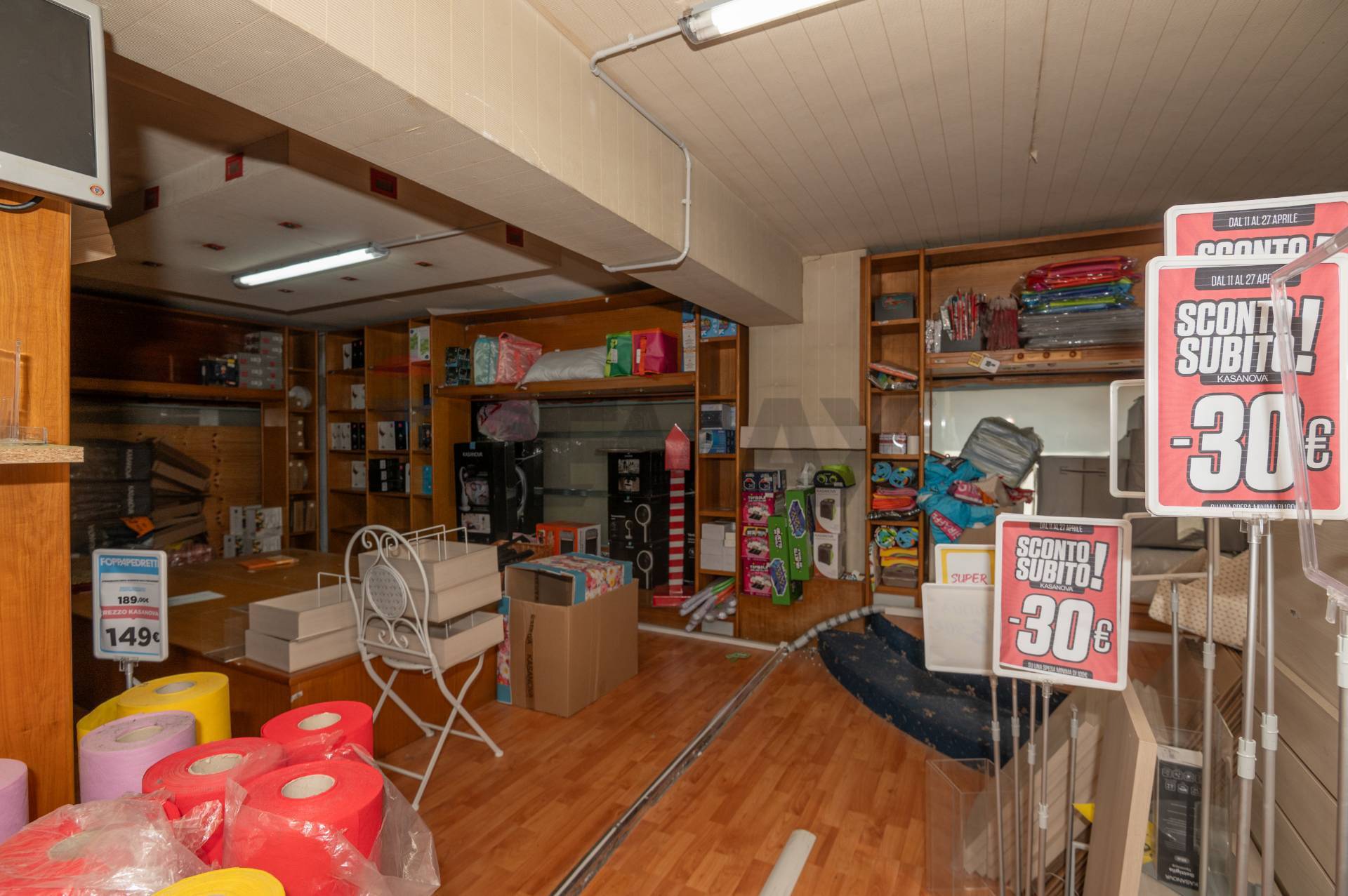 Il locale è dotato di un ampio spazio principale, ideale per l’esposizione di prodotti o l’allestimento di un’area vendita, e di un piccolo magazzino sul retro per lo stoccaggio di merce.