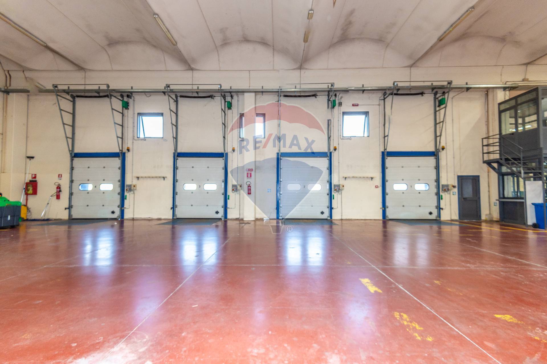 Gli ingressi, ben distribuiti, sono 6 in totale, permettendo un facile accesso e una rapida circolazione all’interno della struttura. Per agevolare le operazioni di carico e scarico delle merci, sono presenti 4 baie di carico, disposte lungo la facciata del capannone.