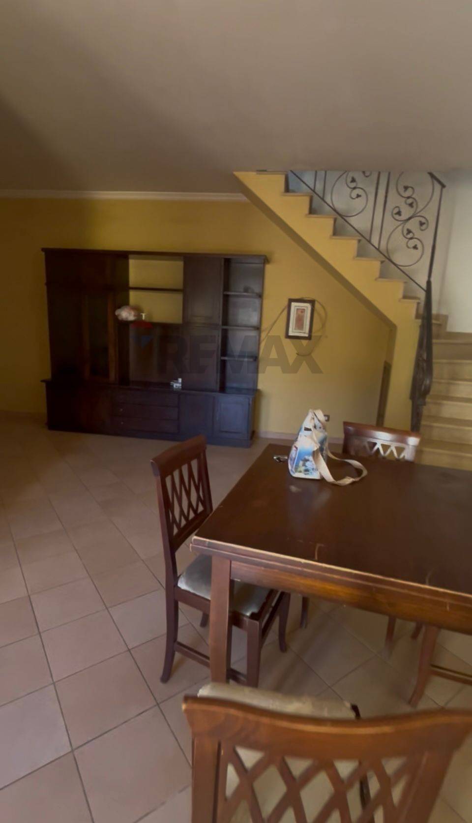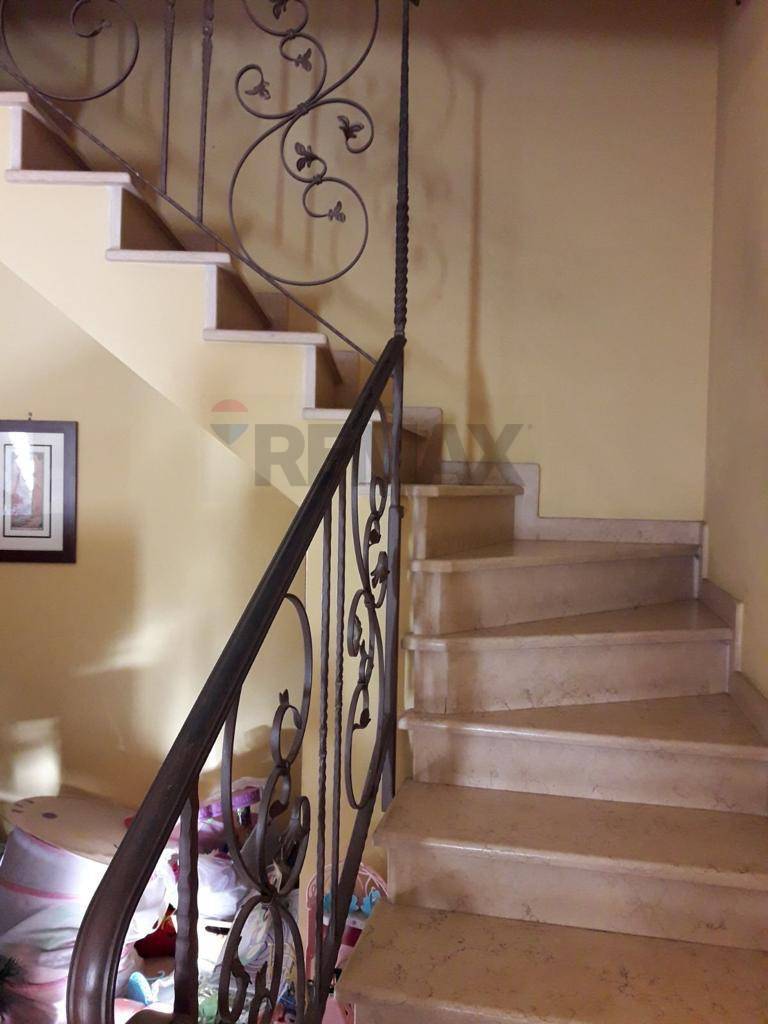 Una scala interna collega i due livelli della casa; i gradini sono realizzati in marmo pregiato con corrimano e ringhiera in ferro battuto.
