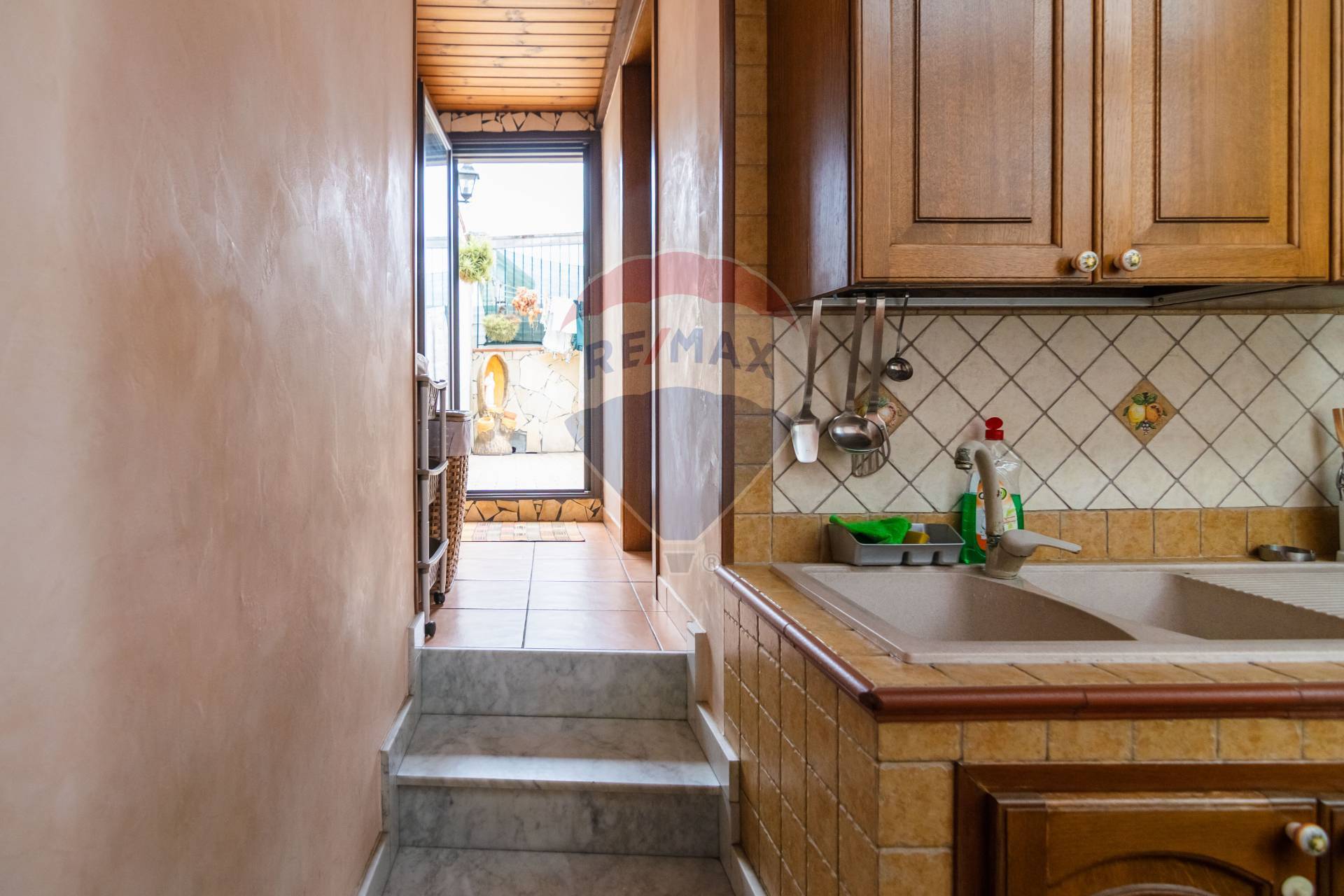 L’immobile, ubicato in Via Vittorio Emanuele III, è così composto: Ingresso su strada, l’androne si presenta caloroso e bene rifinito, è stato ricavato un comodo ripostiglio nel sottoscala, la scala ci porta al primo piano, dal disimpegno troviamo una camera matrimoniale dalle dimensioni generose, una cameretta, un bel bagno, salone ampio e luminoso con affaccio su Via Vittorio Emanuele III e con camino, di fianco abbiamo una bella cucina con affaccio sul balcone verandato dove è stato ricavato un angolo cottura con cucina in muratura, di seguito troviamo disimpegnato il secondo servizio e l’affaccio sul terrazzino a livello, perfetto per momenti di relax in famiglia, dal corpo scala accediamo al piano superiore dove troviamo la terrazza di circa 100 metri quadrati e un ulteriore locale dove poter creare un angolo cottura per piacevoli grigliate estive.