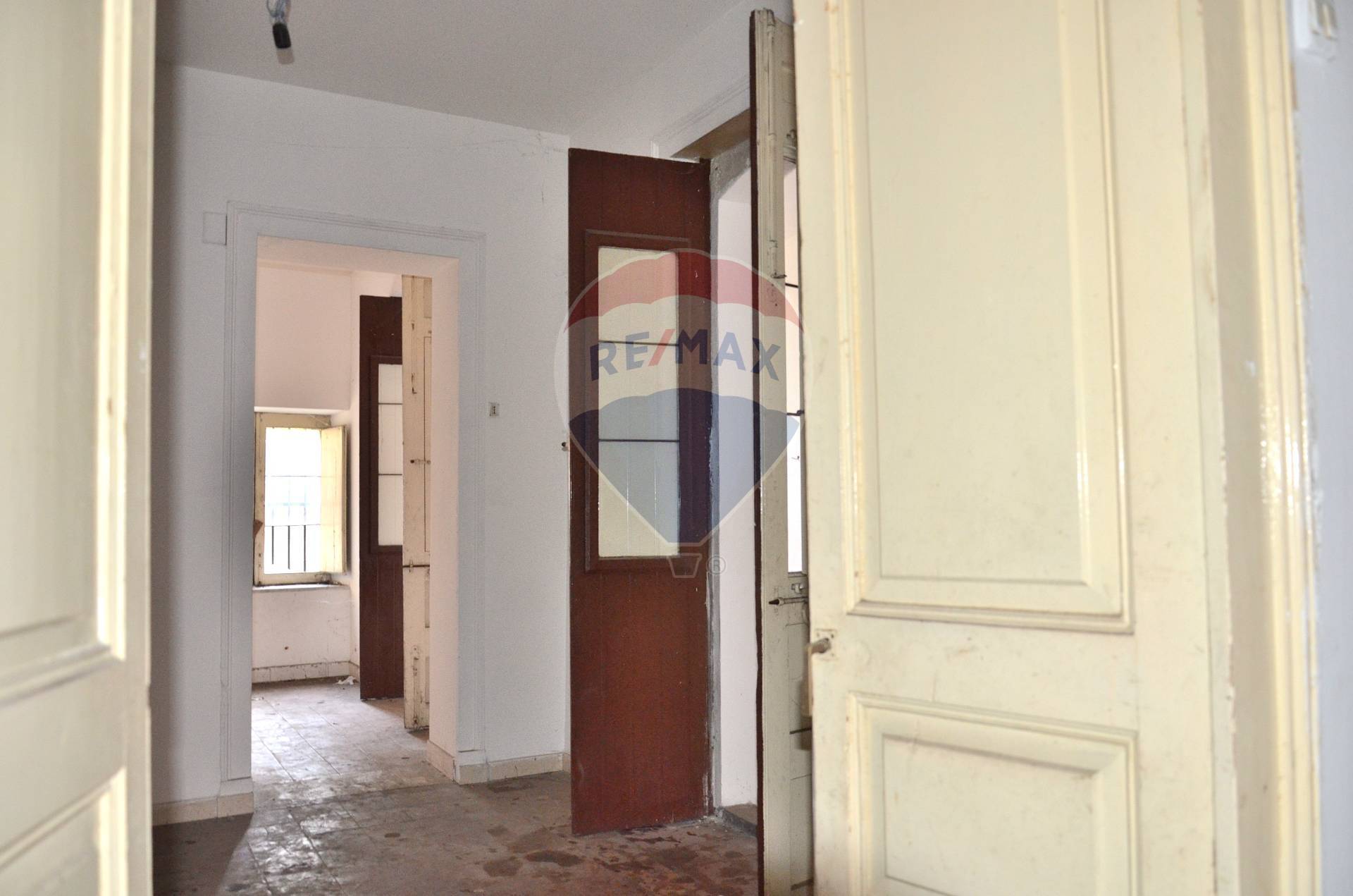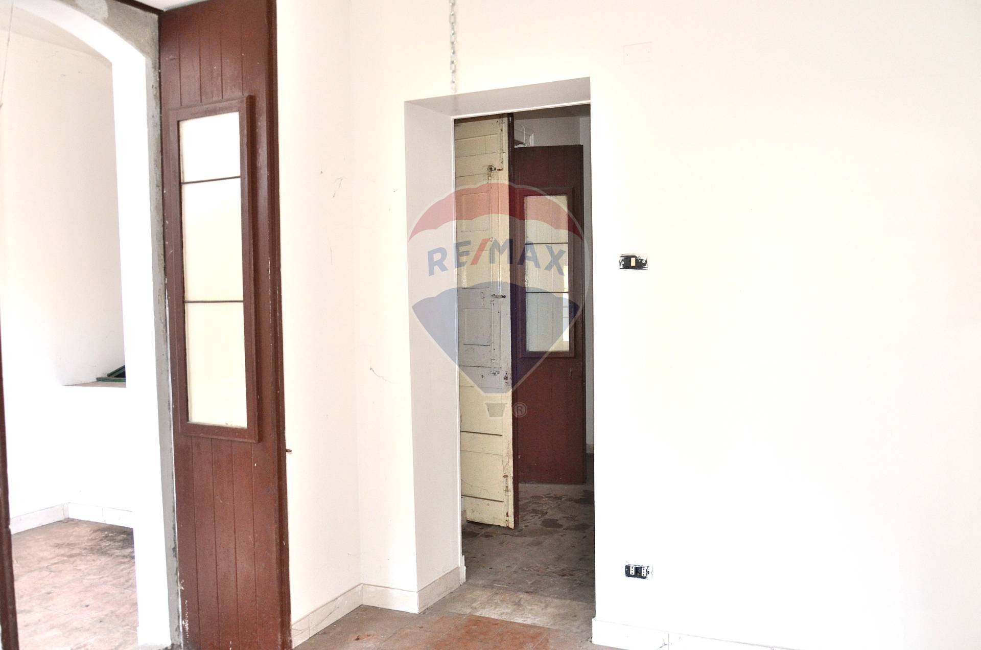 L’accesso all’immobile avviene da un portoncino posto sulla nazionale, che immette su un disimpegno, il quale, attraverso una scala, consente di accedere al piano superiore, oppure, di entrare nelle stanze poste al piano, e in un altro locale, in cui si trova anche un pozzo/cisterna, il quale, da poi accesso ai locali di servizio, cucina e bagno.