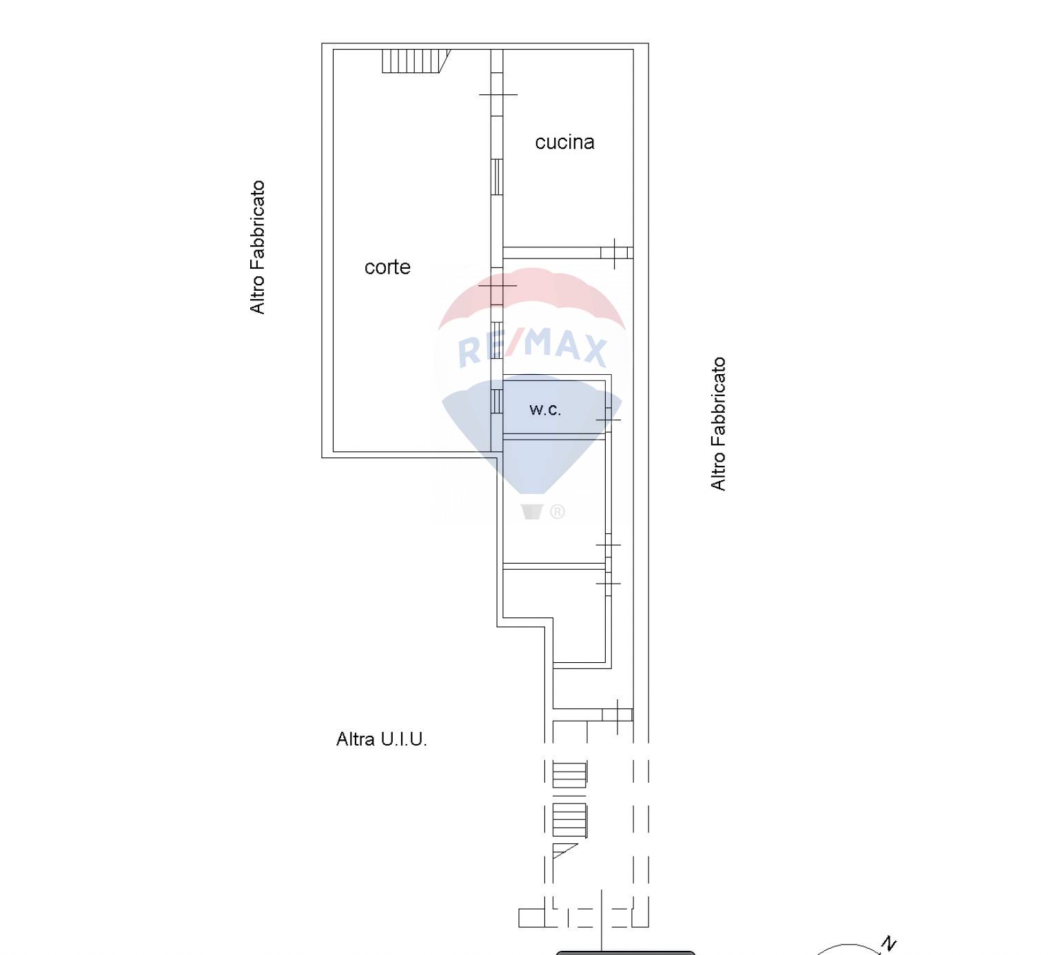 L’immobile è così composto: ingrsso sul disimpegno, due camere, il bagno, una camera matrimoniale e la cucina con accesso diretto sulla corte esterna di esclusiva pertinenza.