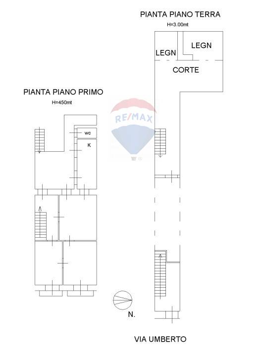 Immobile su due livelli, con due ingressi, uno diretto dal portone sulla strada principale del paese e uno da una stradina sul retro della palazzina con cancello carrabile per accedere comodamente con la propria automobile nel cortile della casa.
