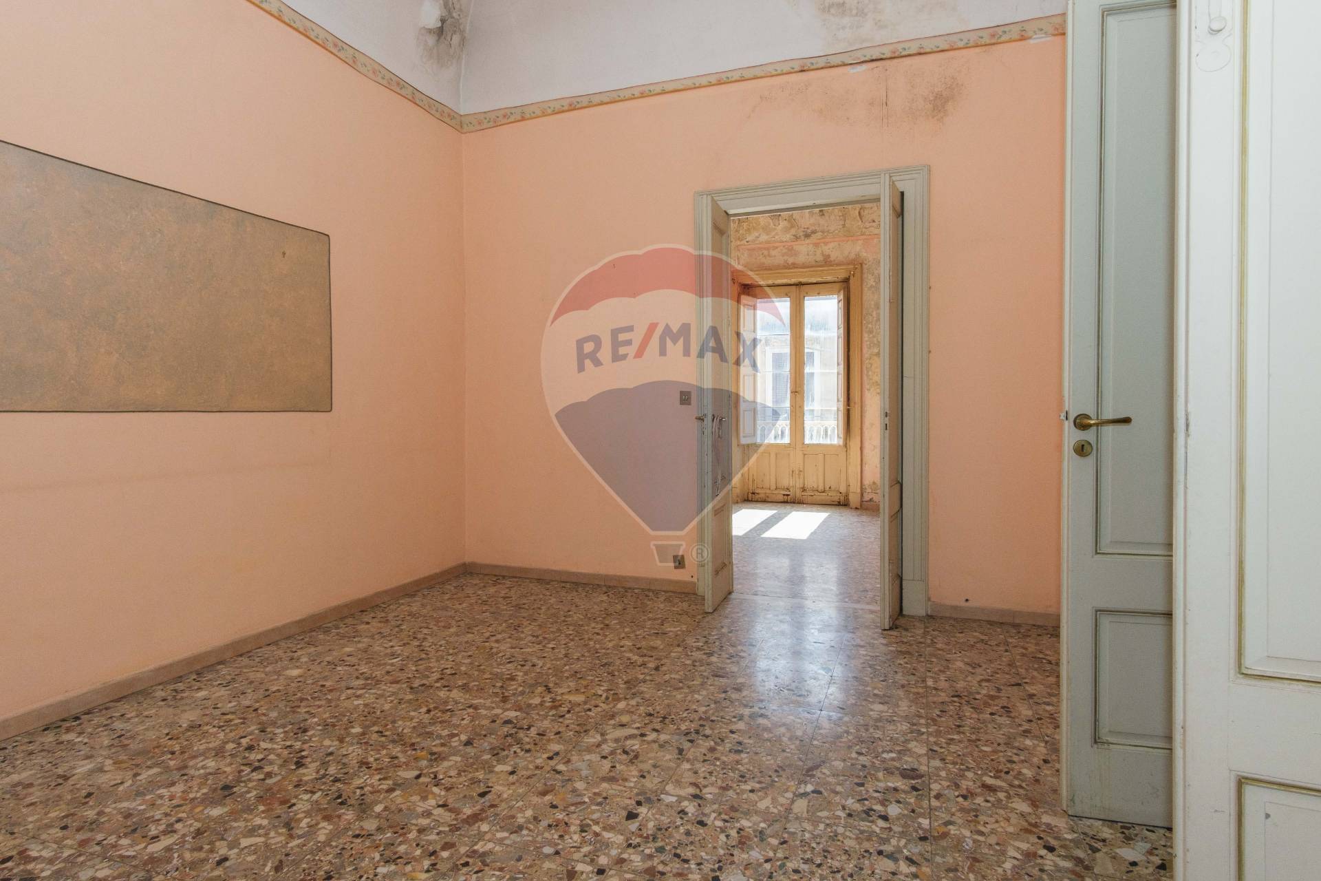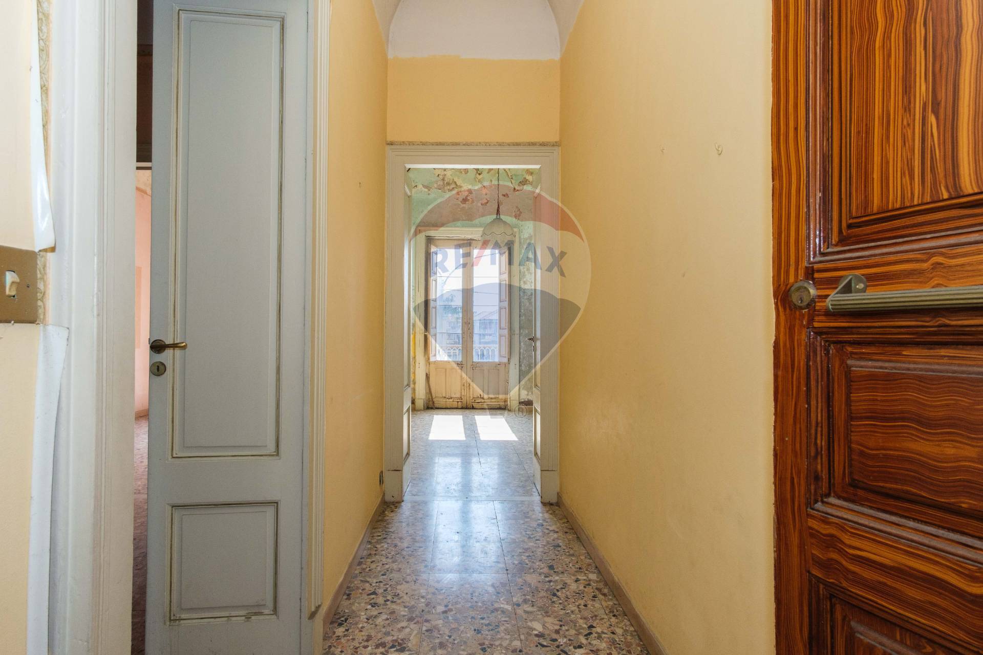 Dall’ingresso si snoda una scala che conduce al primo piano. Le stanze con balcone sul corso principale sono molto luminose. Gli affacci su tre lati consentono una piacevole areazione degli spazi interni.