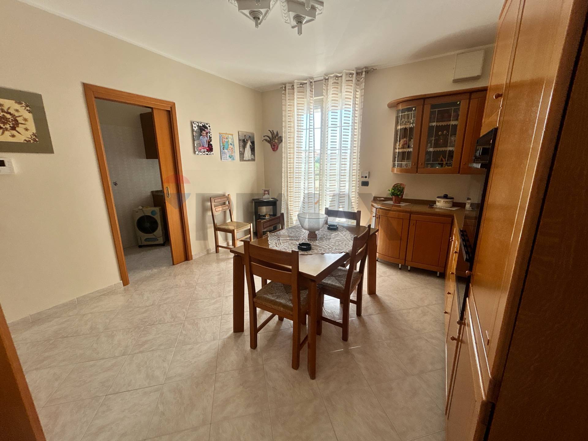 Salendo al piano rialzato, troverai una cucina, un soggiorno, una cameretta e due camere da letto, oltre a un ripostiglio e un bagno, tutte le camere sono ampie e luminose.