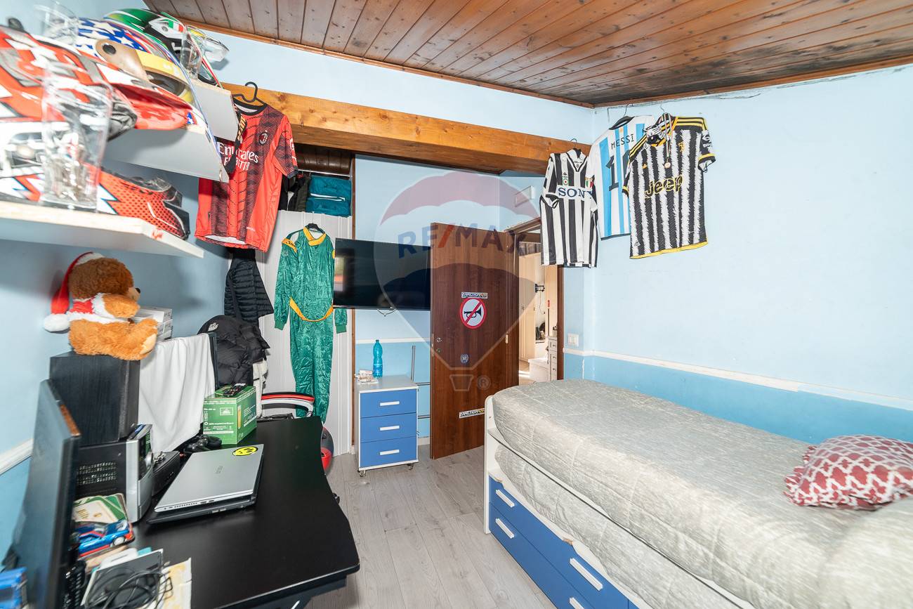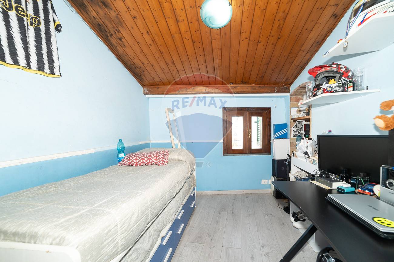 Salendo al piano superiore, si accede alla zona notte, composta da una camera da letto con affaccio sul terrazzo, una cameretta e un bagno di dimensioni più contenute, dotato di doccia.