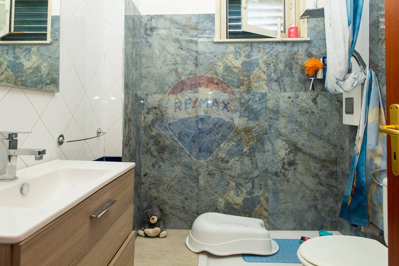 Rispetto al condominio entriamo in un patio indipendente con una veranda di 8 Mq circa, con vetri opachi, che preservano la privacy, subito dopo la porta d’ingresso dalla quale si accede alla cucina abitabile, sulla sinistra il bagno e la lavanderia, sull’altra esposizione la camera da letto matrimoniale e la cameretta che si affacciano su un terrazzino di oltre 10 Mq.