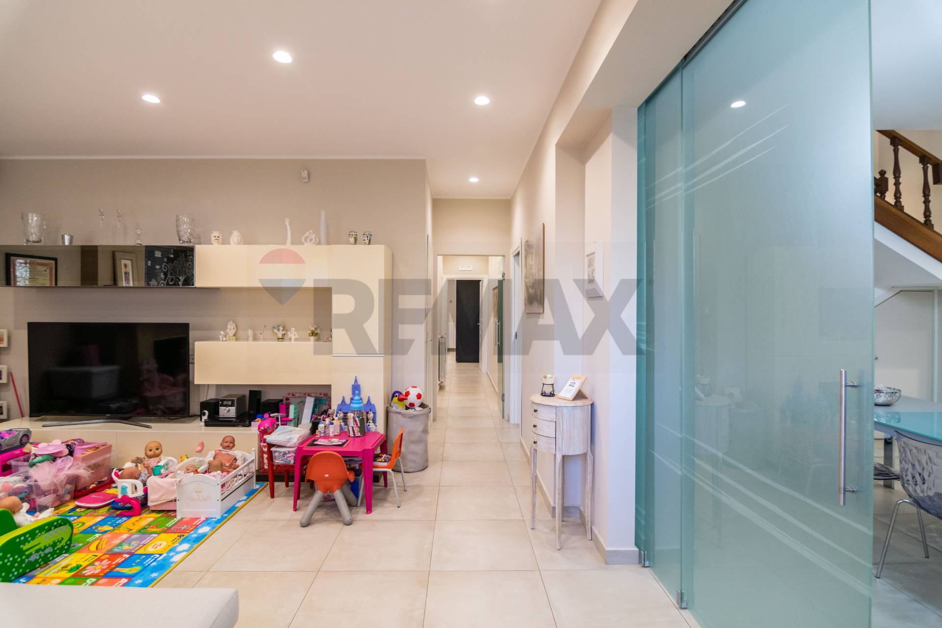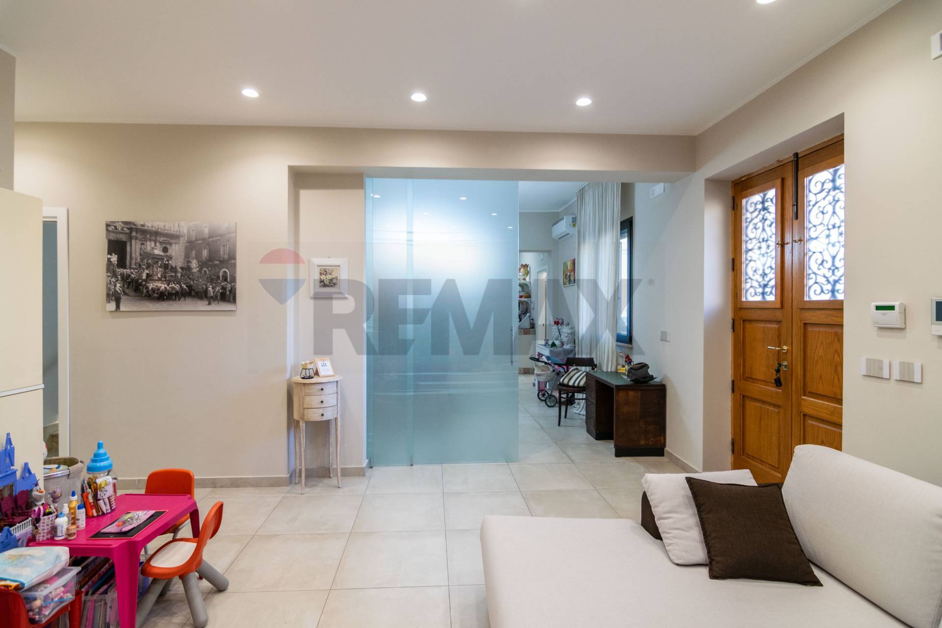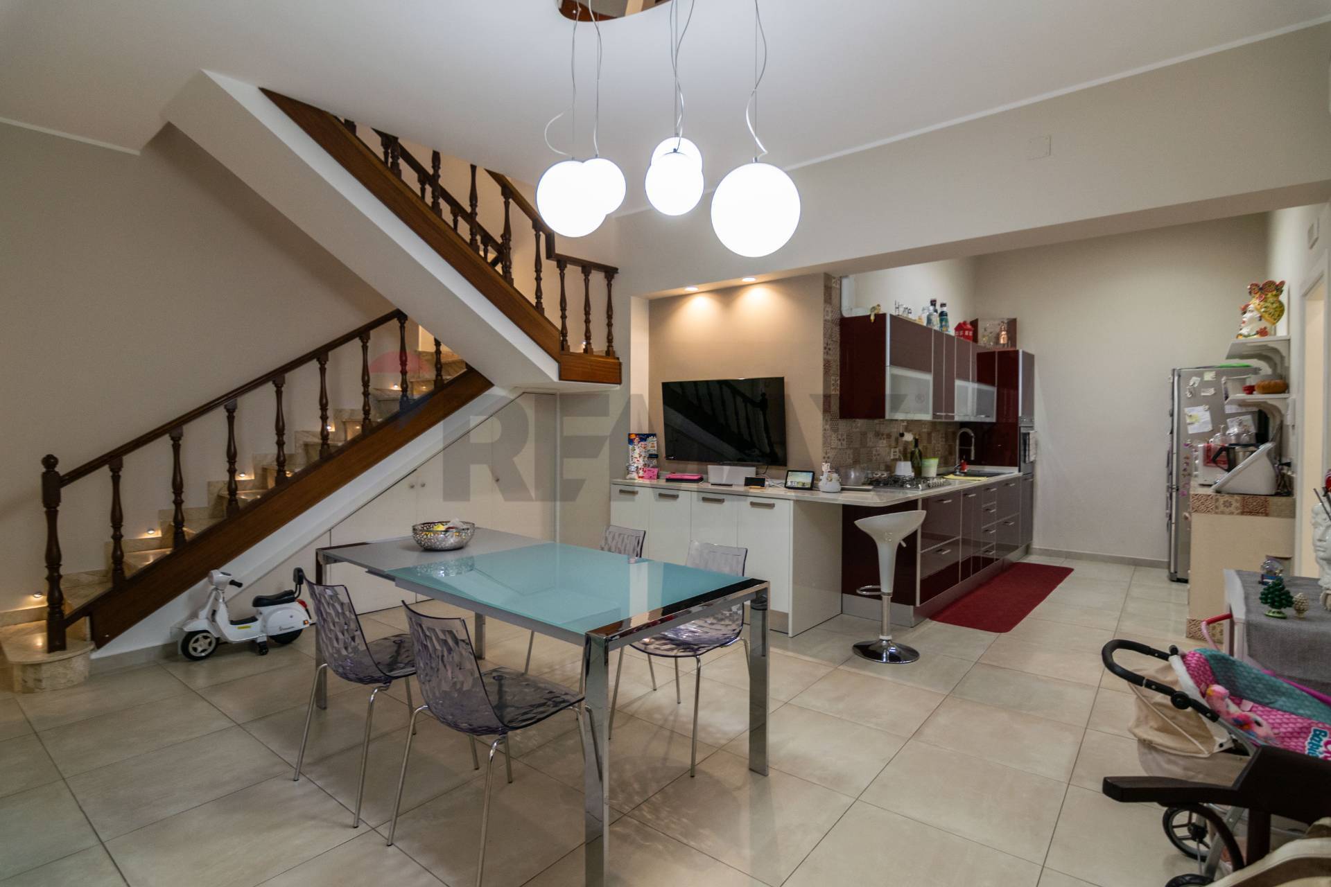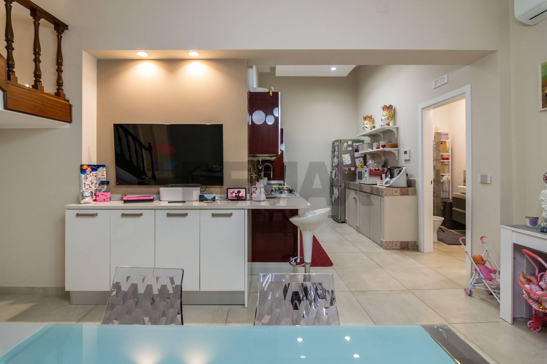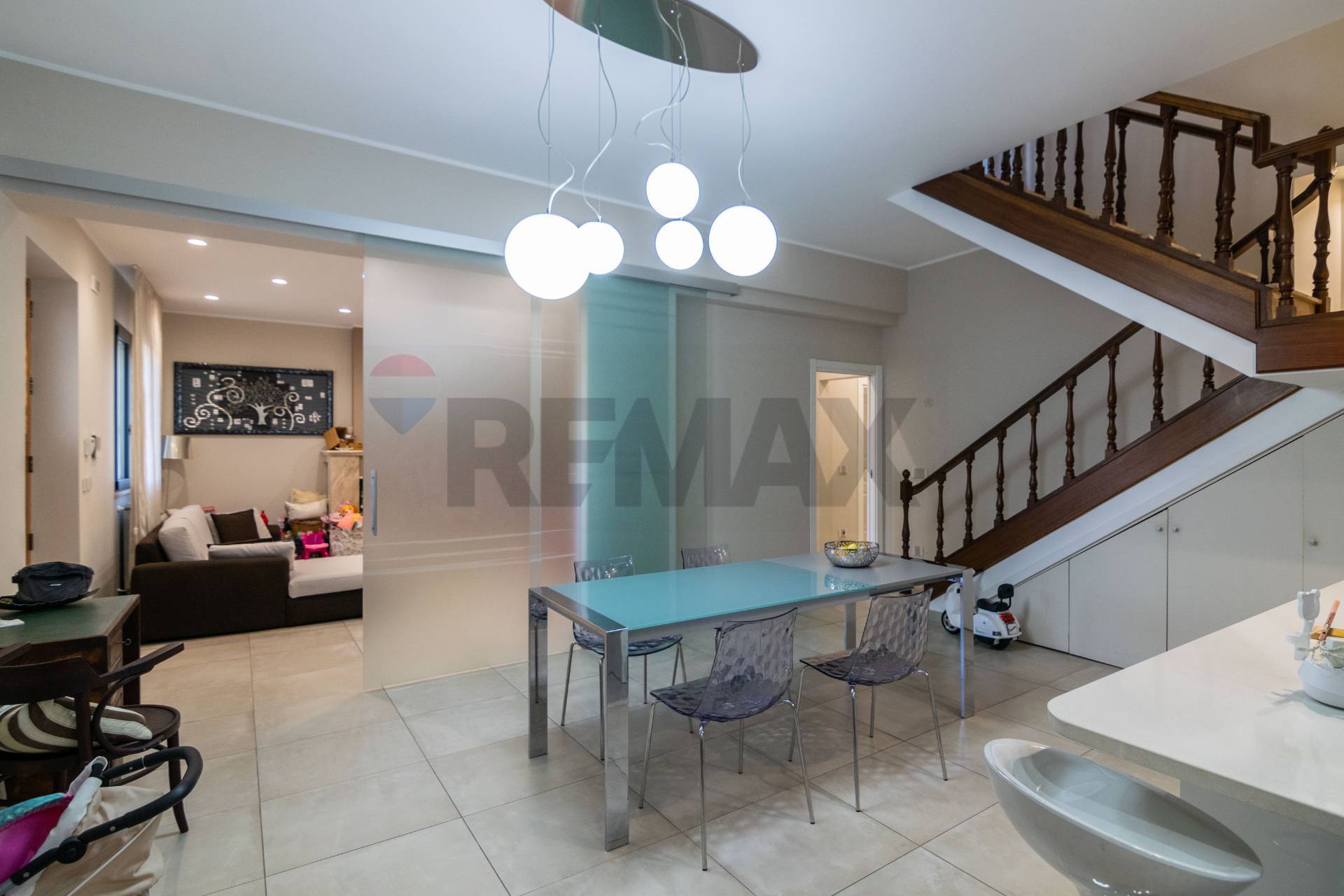 L’immobile è stato di recente oggetto di una totale ristrutturazione, e presenta infissi di ultima generazione, cartongesso e faretti, aria condizionata, impianto di video sorveglianza, impianti rifatti e certificati ed è stato rifinito con gusto e in stile moderno, si presenta pronto al rogito e completo dal punto di vista documentale.