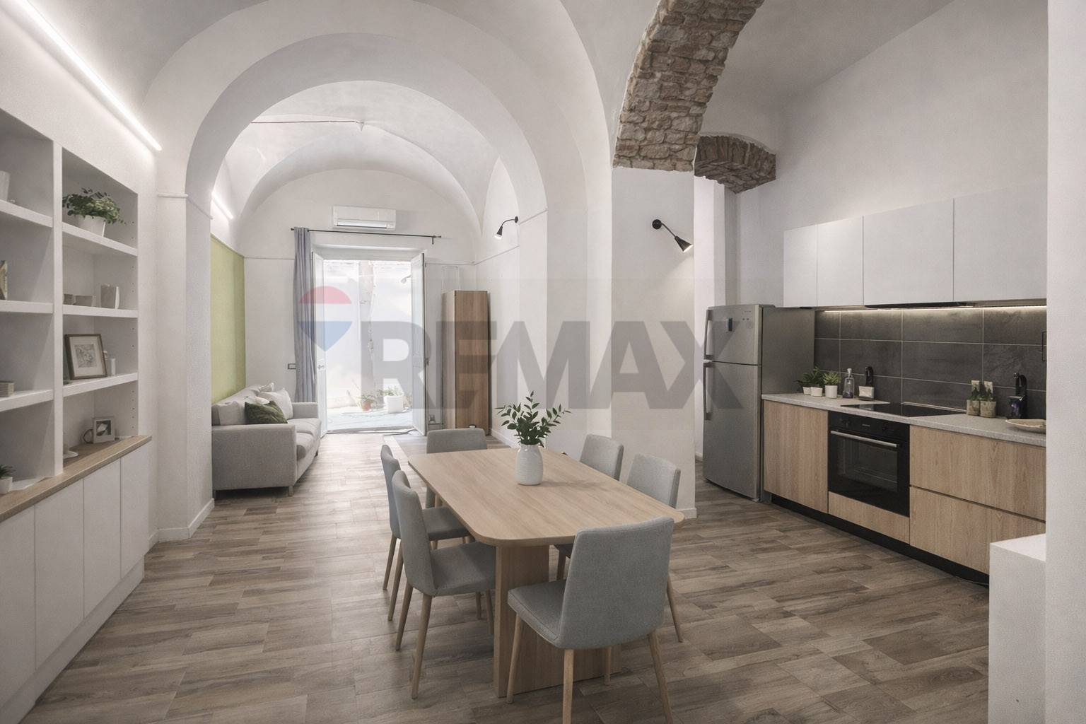 soggiorno/pranzo con cucina a vista