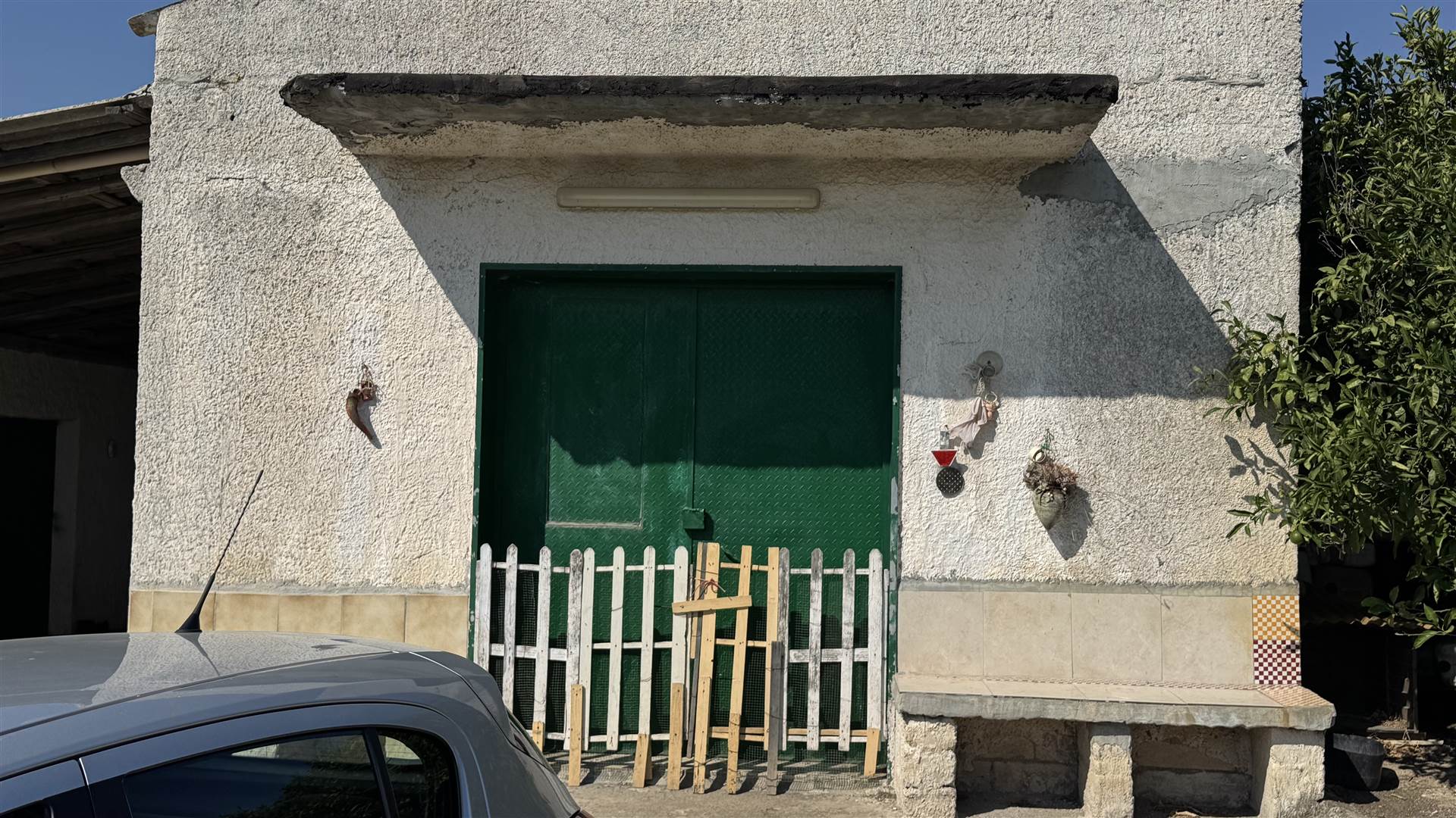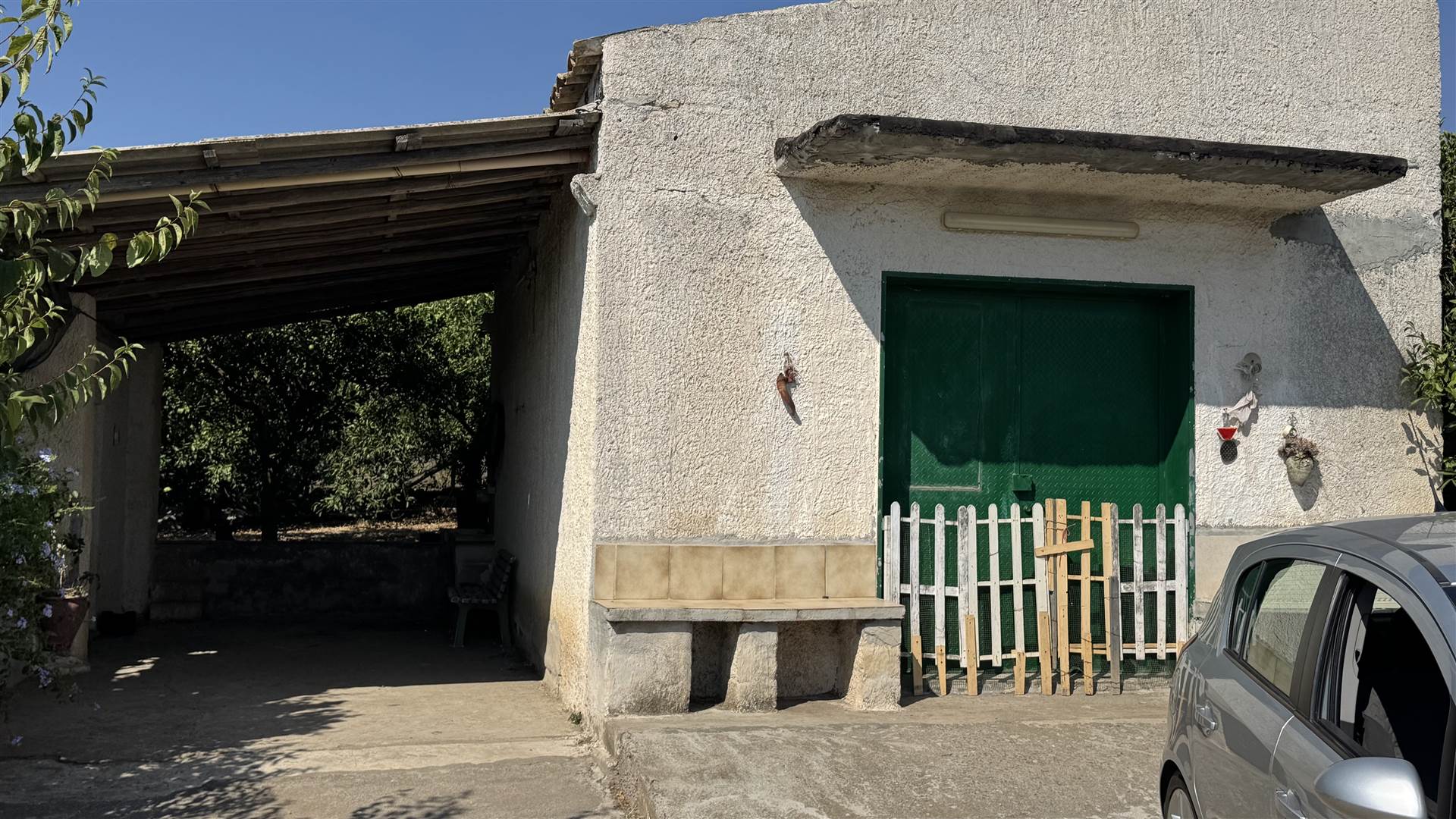 La proprietà è dotata di ulteriori strutture e servizi, tra cui una piccola casa con forno per ricovero attrezzi, un deposito di 49 mq, e un piccolo bagno e ripostiglio. L’intera area è recintata e fornita di energia elettrica.