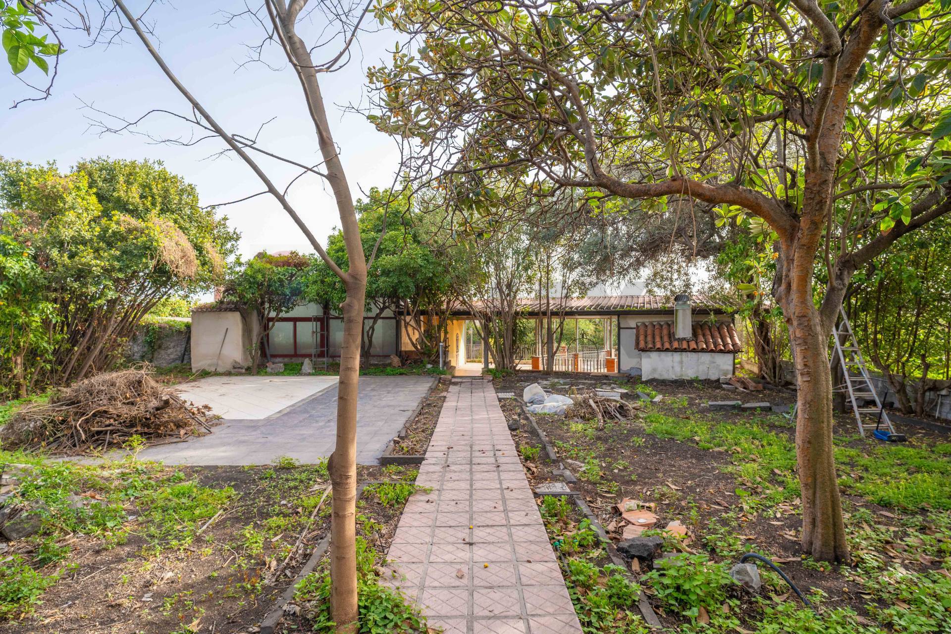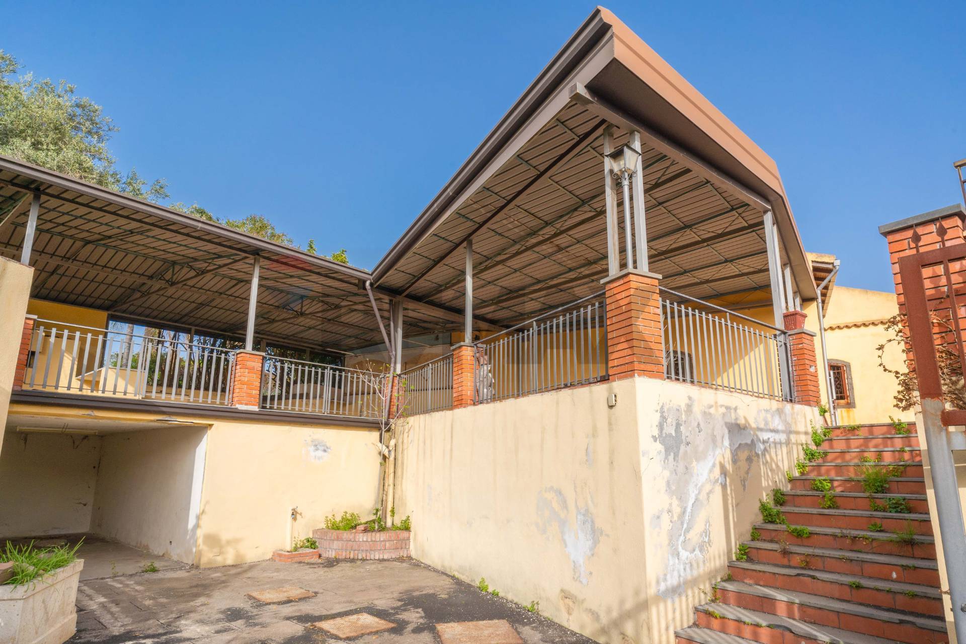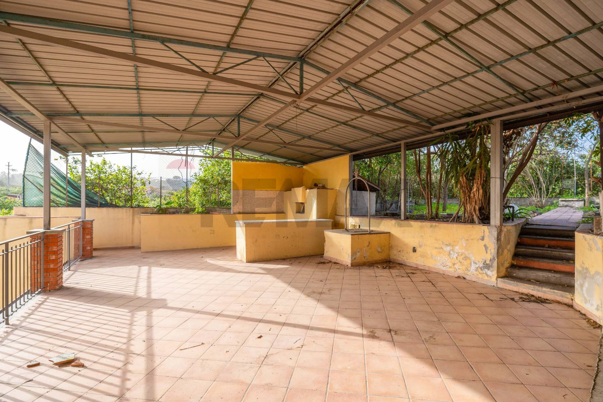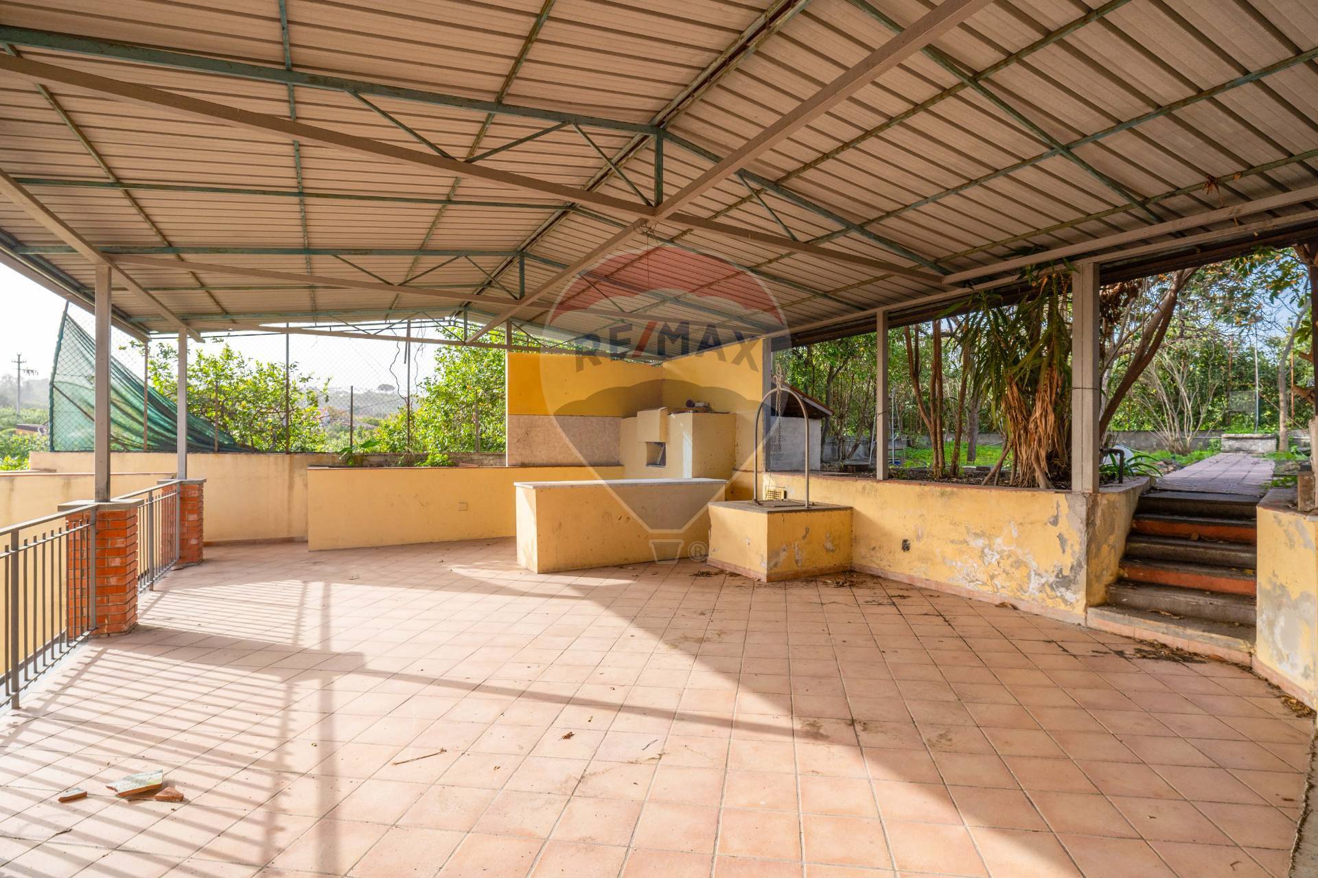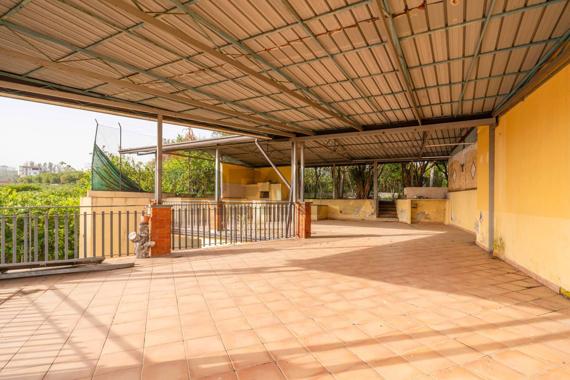All’ingresso principale, accediamo tramite un cancello carrabile che conduce ad un cortile dotato di un comodo ripostiglio/garage di circa 20 mq, ideale per il ricovero di auto o il deposito di merce. Salendo le scale, ci troviamo davanti ad un ampio terrazzo coperto di circa 100 mq, dotato di una tettoia che offre una piacevole zona all’ombra, arricchita da un forno a legna. Dal terrazzo, attraverso un breve tratto di giardino pavimentato, si accede ad un giardino esclusivo di circa 300 mq, caratterizzato da alberi da frutto e una zona ideale per intrattenere gli ospiti.