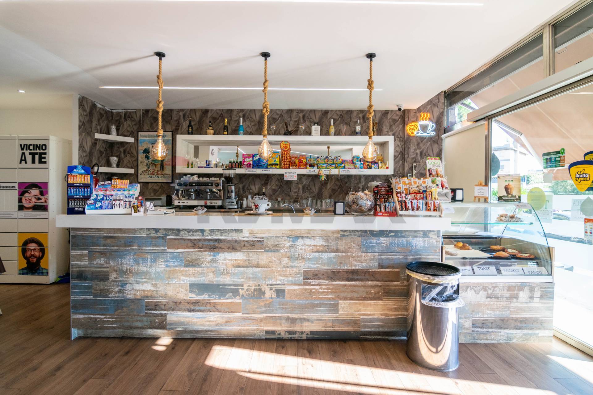 Compresa nella vendita gli arredi, i banconi.