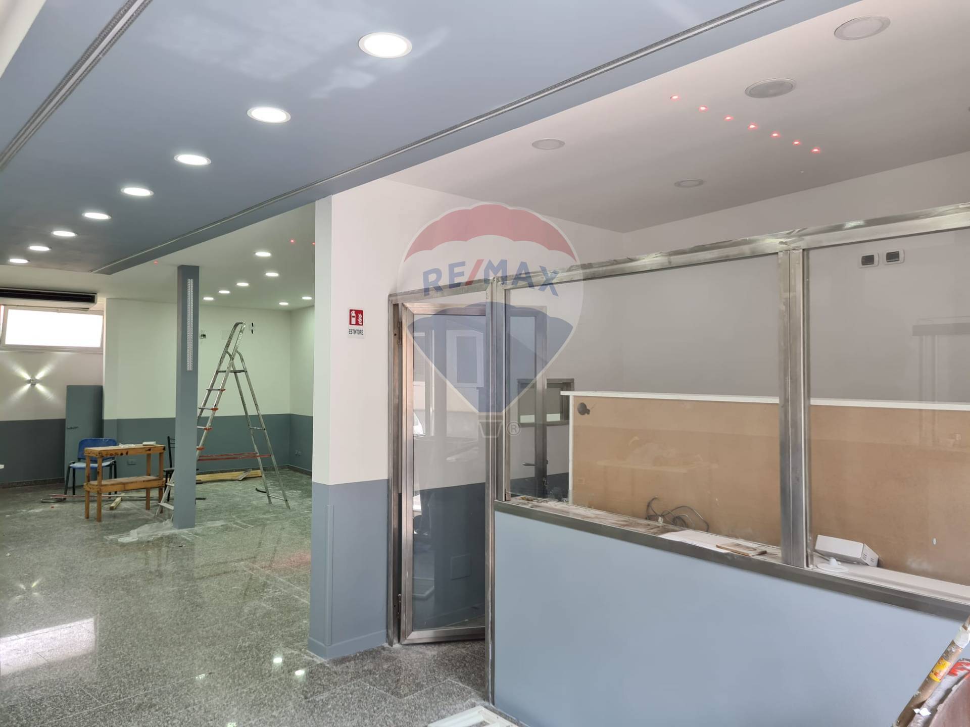 Sulla destra, troviamo un piccolo ufficio riservato con vetrate, perfetto per la gestione amministrativa.