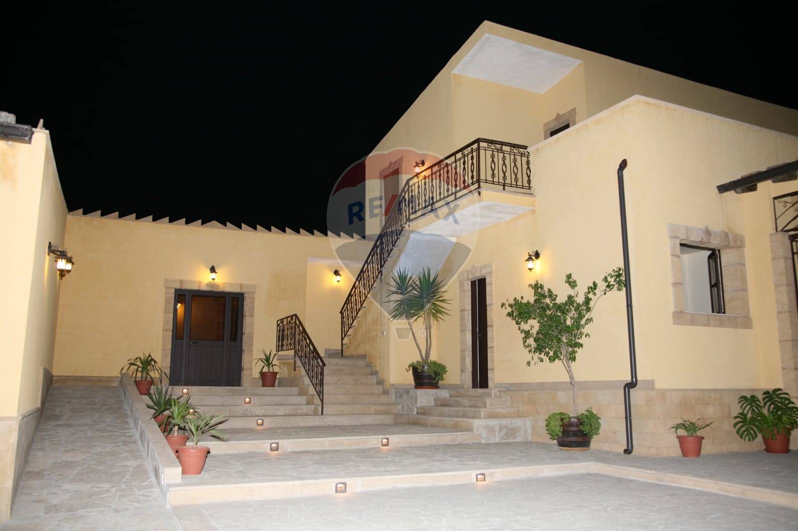 A completare la proprietà, un terreno di 8 ettari che costeggia il complesso, piantumato con agrumi e olivi lungo tutto il perimetro. Un contesto naturale unico, ideale non solo come cornice paesaggistica ma anche come risorsa agricola produttiva.